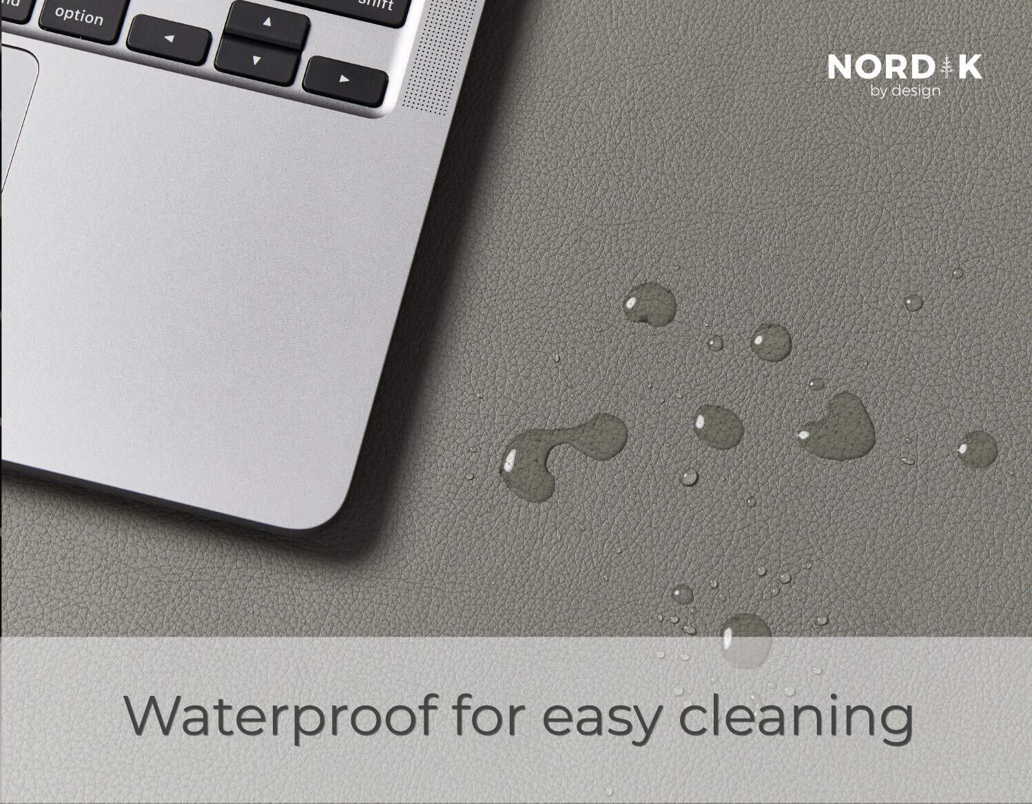 Nordik フェイクレザー デスク マット ケーブル オーガナイザー (グレー 90 X 43 cm) プレミアム拡張マウス マット ホーム オフィス アクセサリー用 - フェルト ビーガン ラージ レザー デスク パッド プロテクター & デスク ブロッター パッド 装飾