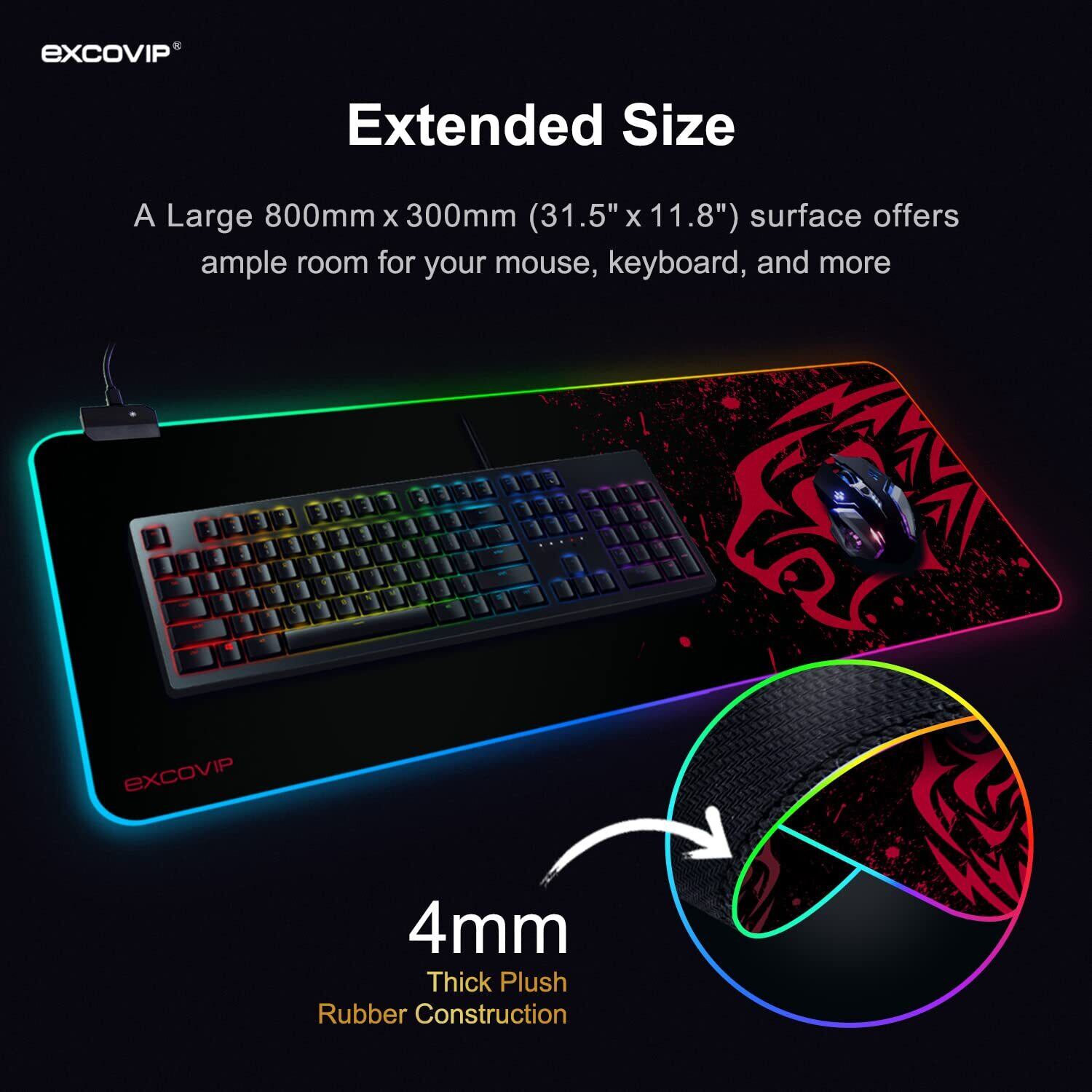 excovip RGB ゲーミングマウスパッド 大型 800*300*4mm マウスパッド 拡張 USB LED 発光 マウスパッド 7色の発光色 カラフル滑り止め ラップトップマットオフィスおよび家庭用デスクマット (RGBレッドレオパード)…