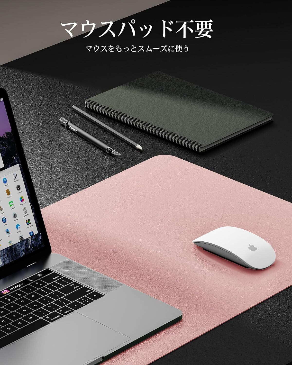 「お手入れ簡単」:防水レザーデスクパッド。基本的なお手入れは布で拭くだけです。汚れがひどい場合は、濡れた布で拭いてください。