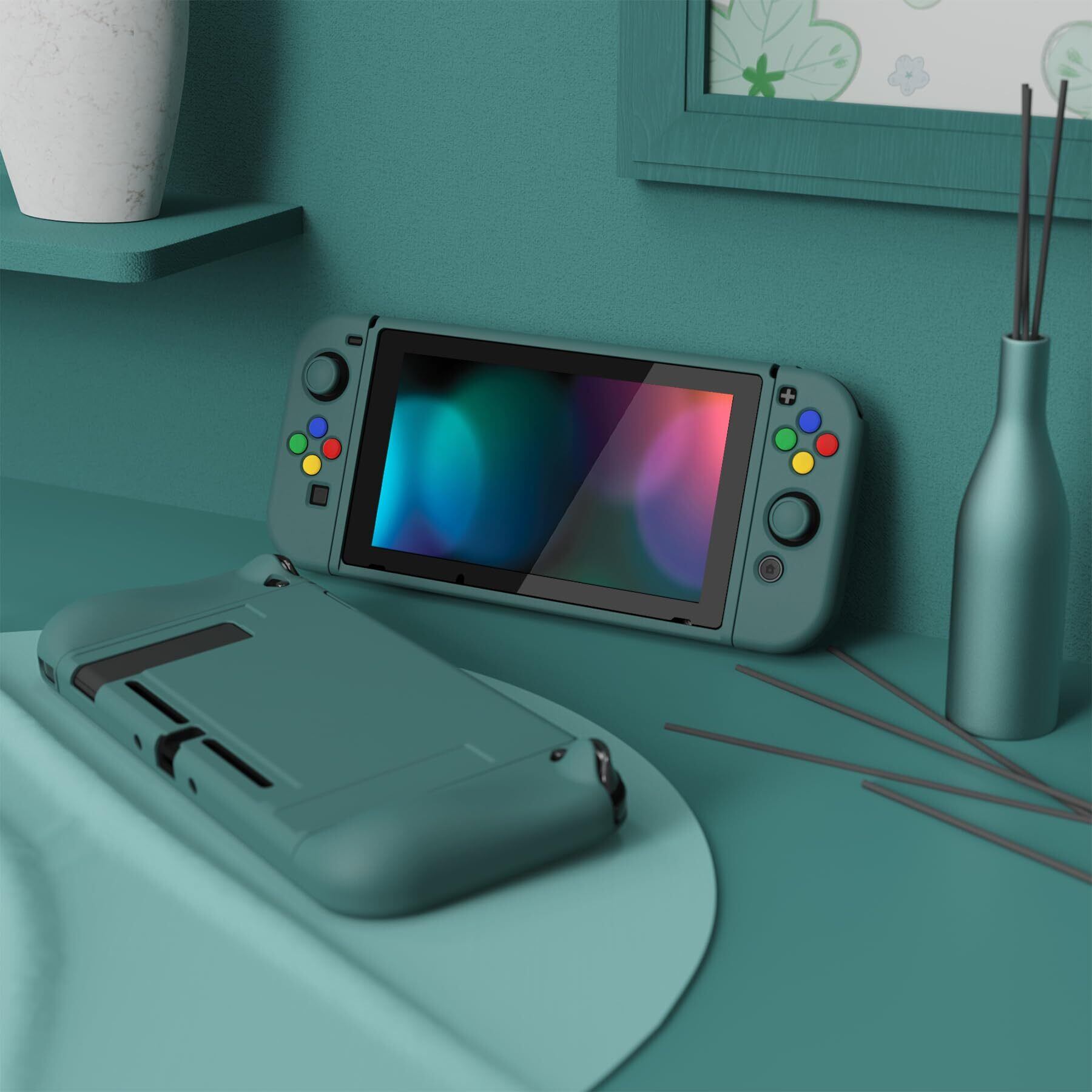 PlayVital ZealProtect Nintendo Switchに対応用ソフト保護シェル、switchに対応用フレキシ保護カバー、スクリーン保護フィルム&サムグリップキャップ&ABXY方向ボタンキャップ付き-純色系【ハンターグリーン】