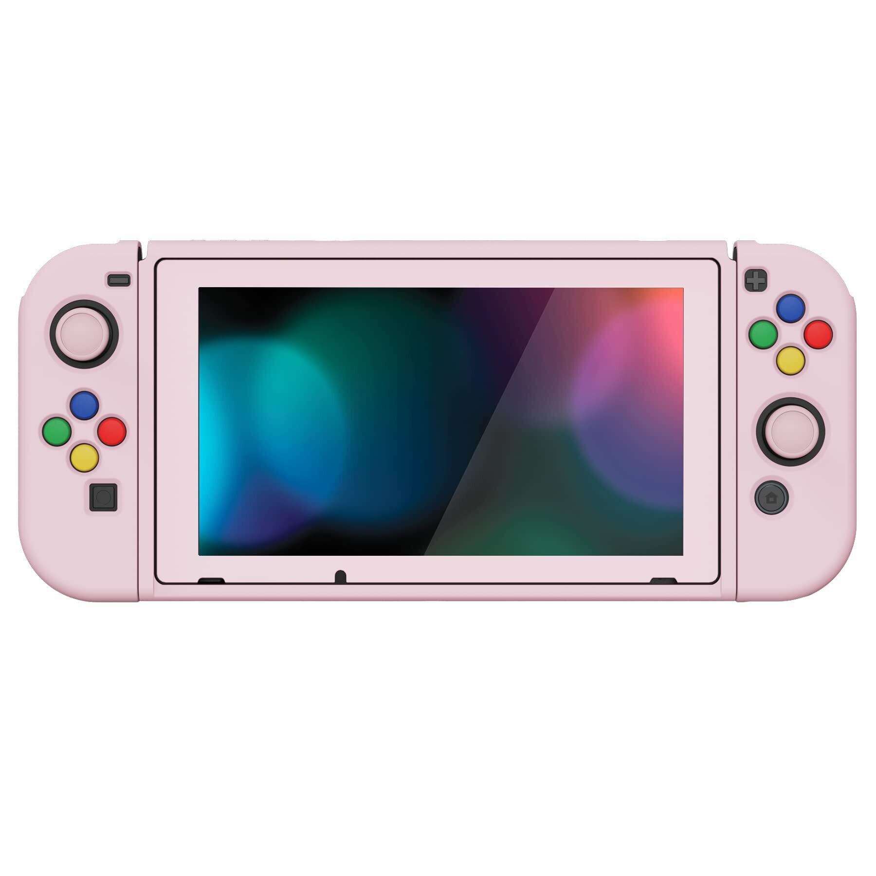 PlayVital ZealProtect Nintendo Switchに対応用ソフト保護シェル、switchに対応用フレキシ保護カバー、スクリーン保護フィルム&サムグリップキャップ&ABXY方向ボタンキャップ付き-純色系【チェリーブロッサムピンク】