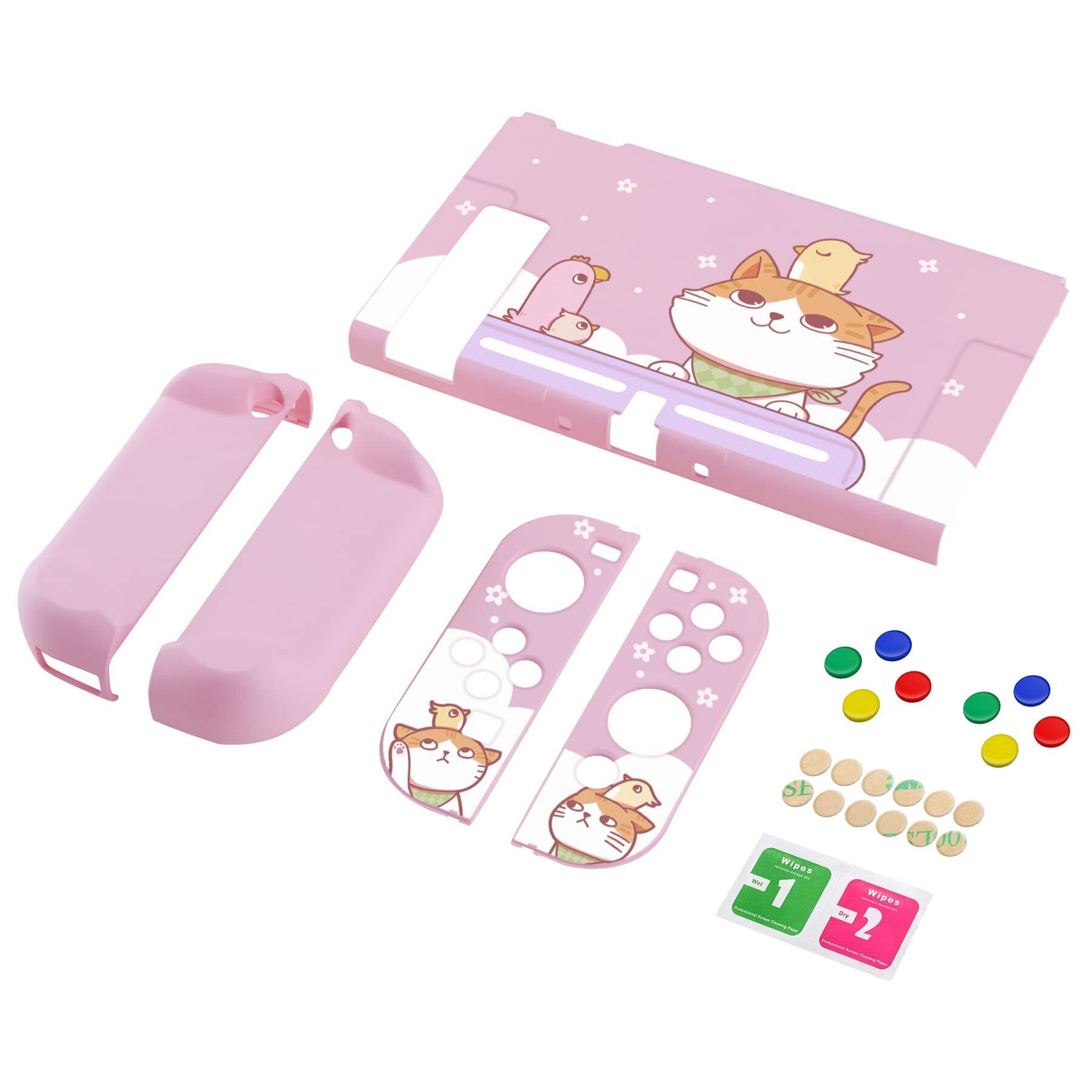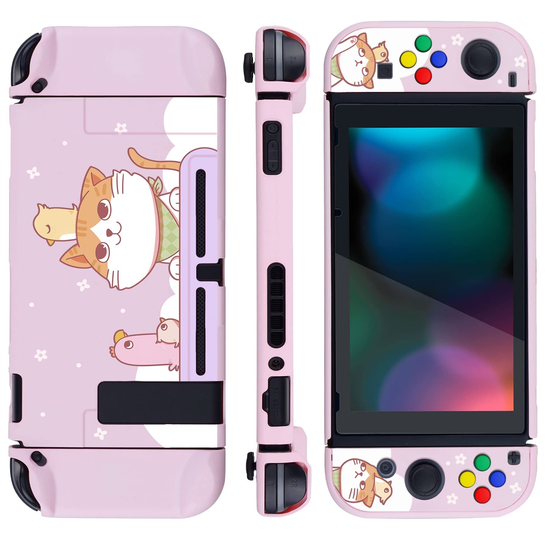 【数量限定】eXtremeRate PlayVital Switchコンソールに対応用バックカバー、NS Joyconハンドヘルドコントローラー分離可能プロテクターハードシェル、Switch用にカスタマイズされたドッキングできる保護ケース【Kitten & Chickenバージョン】 | わくわくSHOP