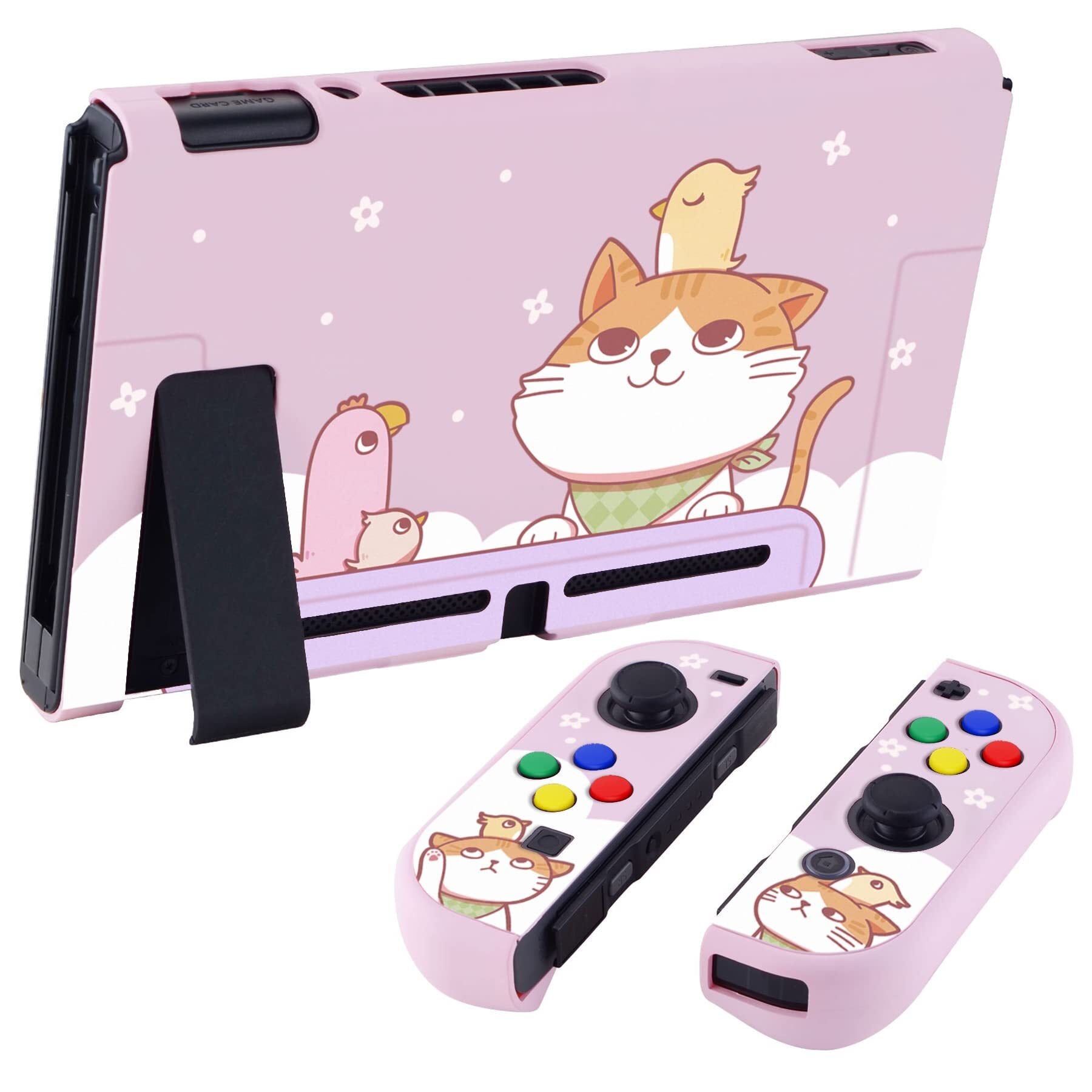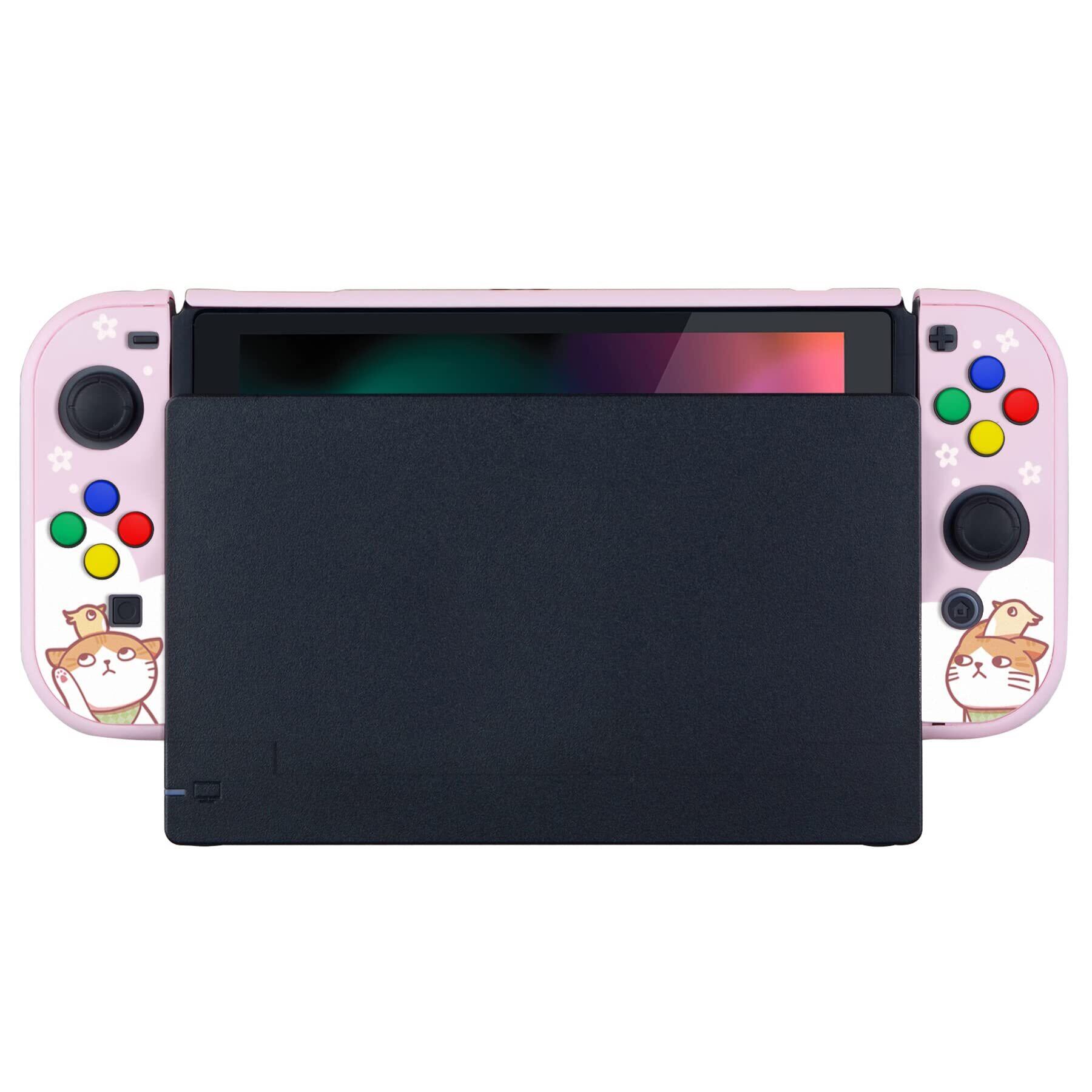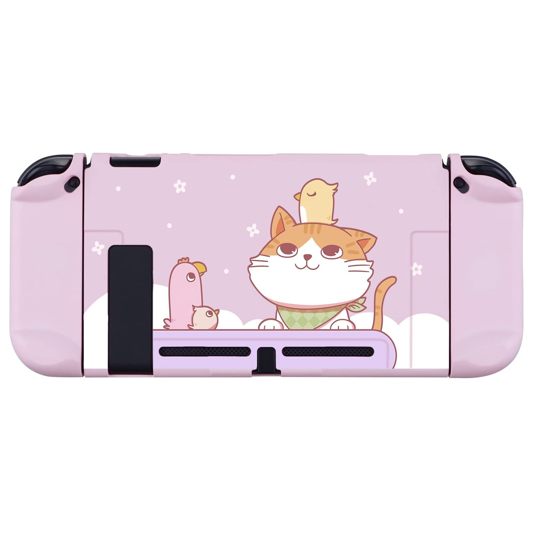 eXtremeRate PlayVital Switchコンソールに対応用バックカバー、NS Joyconハンドヘルドコントローラー分離可能プロテクターハードシェル、Switch用にカスタマイズされたドッキングできる保護ケース【Kitten & Chickenバージョン】