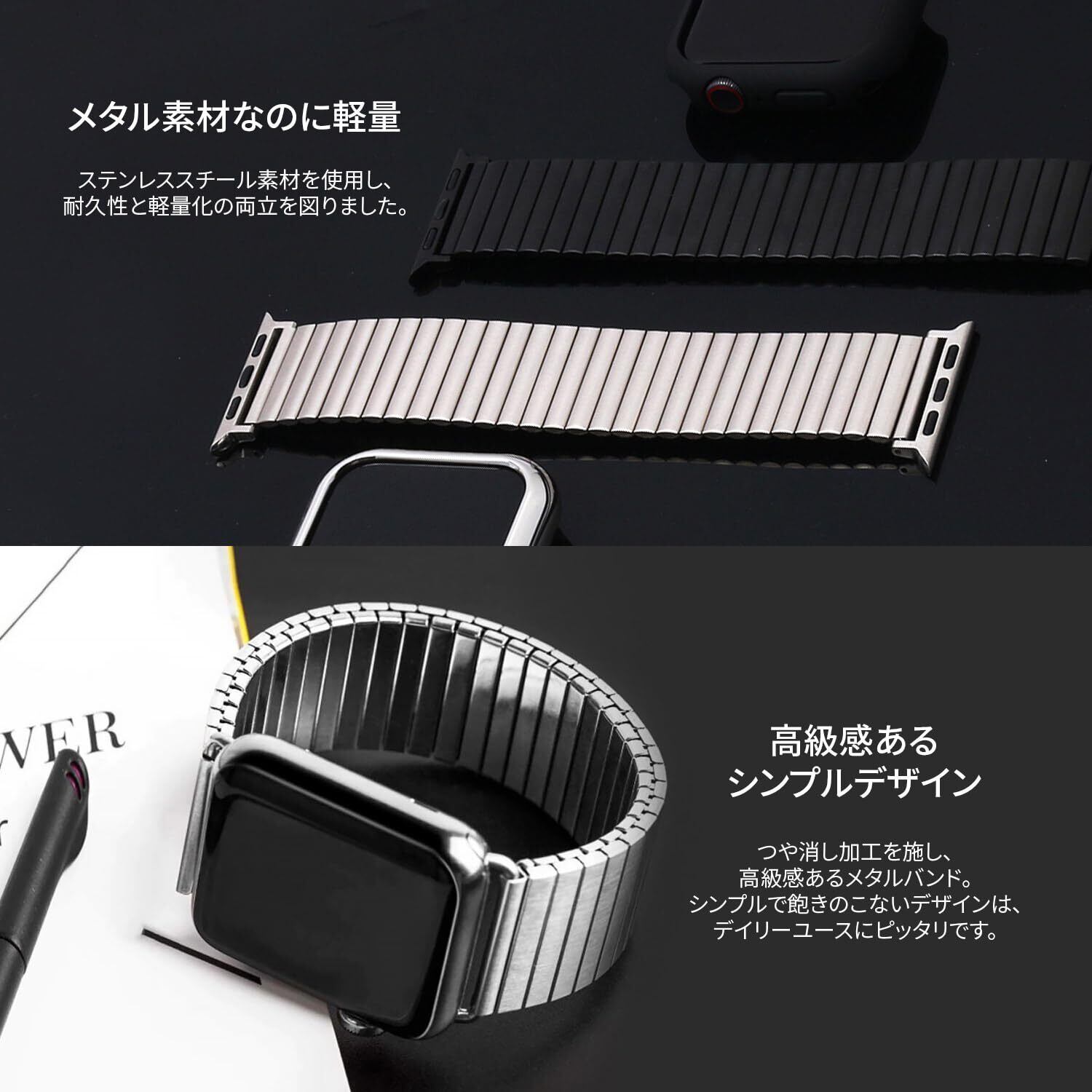 TF7(ティーエフセブン)の「メタルストレッチバンド」は伸縮する蛇腹ベルトで付け外しが簡単な、シンプルながら使いやすさにこだわったApple Watchバンドです。