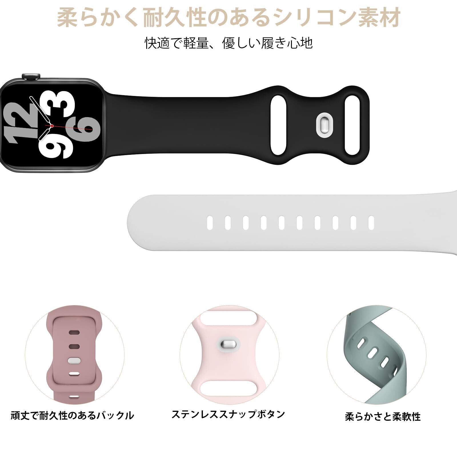 対応機種: シリコーン スポーツ アップルウォッチ バンド コンパチブル Apple Watch 42mm (Series 10)/ 46mm 38mm / 42mm 40mm / 44mm 41mm / 45mm / 49mm, iwatch Ultra 2/ Ultra, Series 10, Series 9, Series 8, Series 7, Series SE, Series 6, Series 5, Series 4, Series 3, Series 2, Series 1。正しいApple Watchモデルとサイズを自分で選択してください。