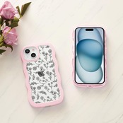 QLTYPRI iPhone 14 用ケース iPhone 13 用ケース クリア TPUカバー ウェーブ おしゃれ 韓国 可愛い 花柄 iPhone14 用ケース iPhone13 用ケース 透明 薄型 軽量 耐衝撃 スマホケース ワイヤレス充電対応 いphone14 ケース ストラップホール付き アイフォン 14/13 ケース 6.1インチ 対応 - ブラック/ピンク