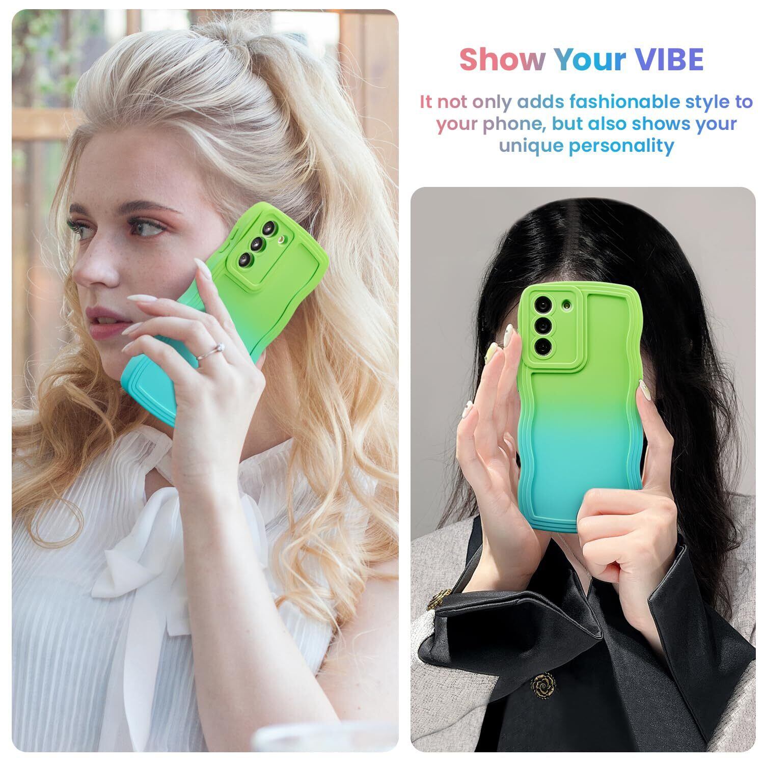 UEEBAI ケース 対応 Samsung Galaxy S20 FE 5G 用の ケース 多色 カラフルケース ソフト シリコンケース かわいい ケース 波型ケース ワイヤレス充電対応 女性 人気 軽量 スマホケース 耐衝撃ケース 落下防止 全面保護携带カバー–グリーンブルー