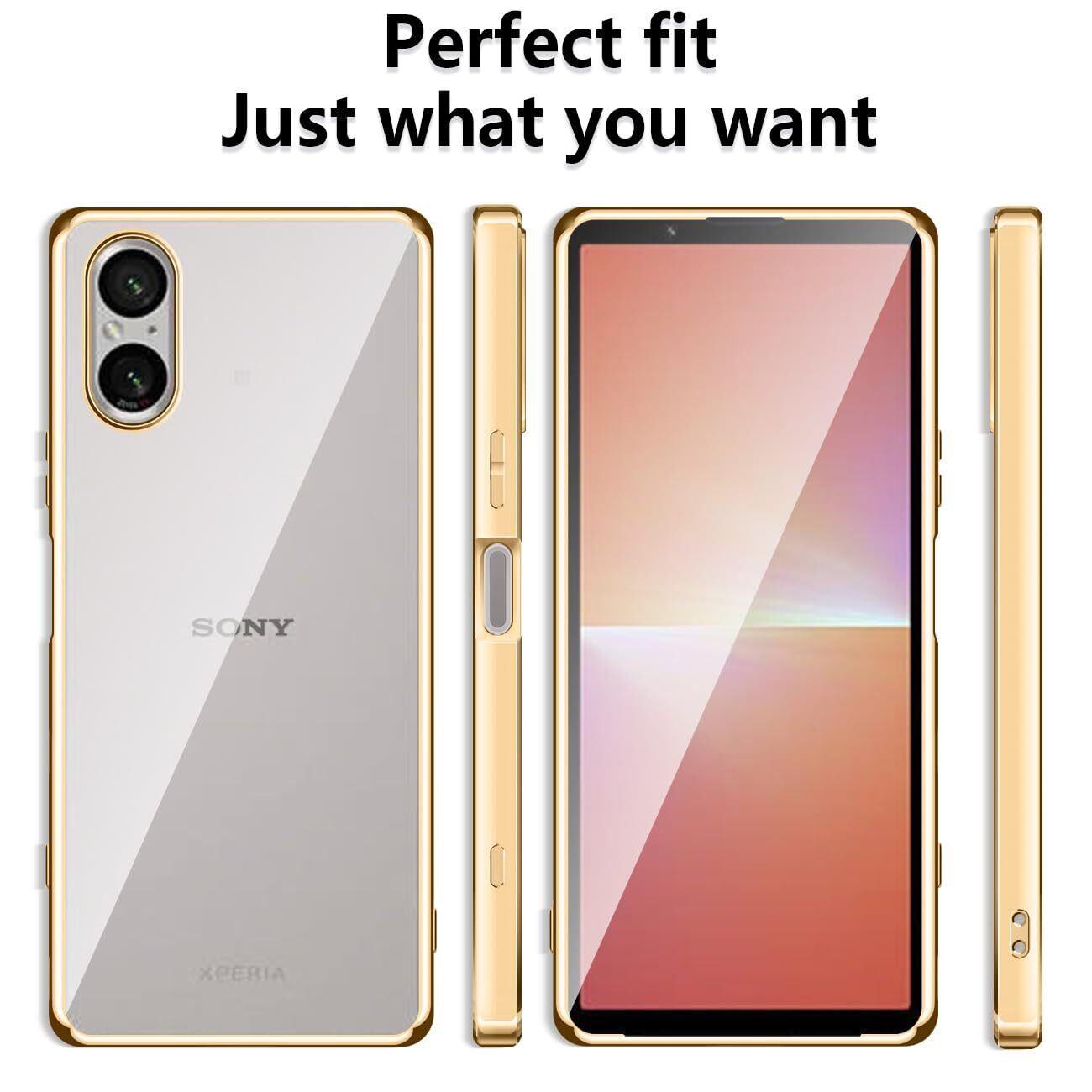 SONY Xperia 5 V ケース クリア 軽量 耐衝撃 TPU バンパー 米軍MIL規格取得 SOG12 SO-53D カバー 極薄 黄変なし ストラップホール付 (ゴールド)