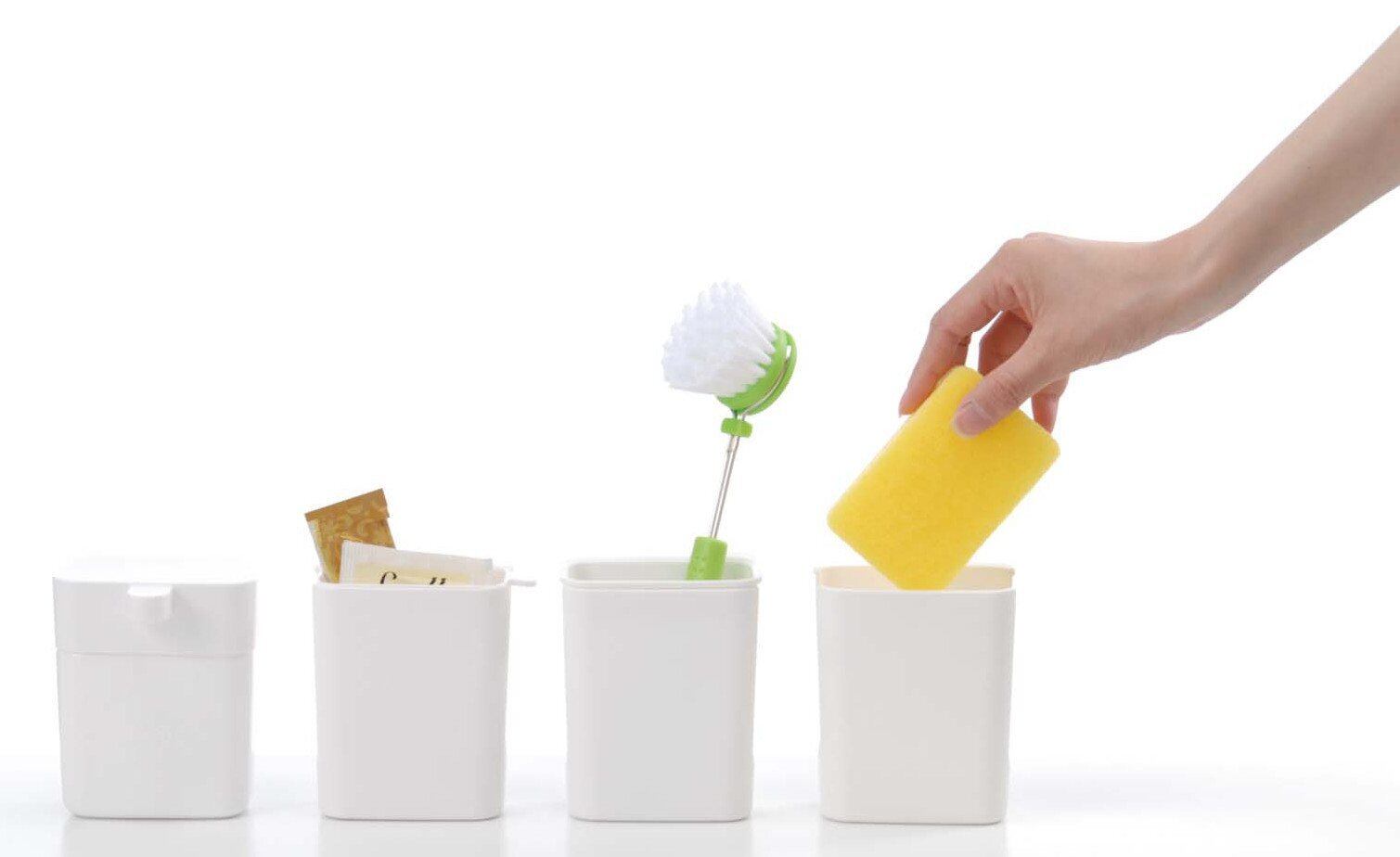 片手で押すだけで洗剤が出ます。スリムで小ぶりなデザインなので、シンクの邪魔をすることはありません。
