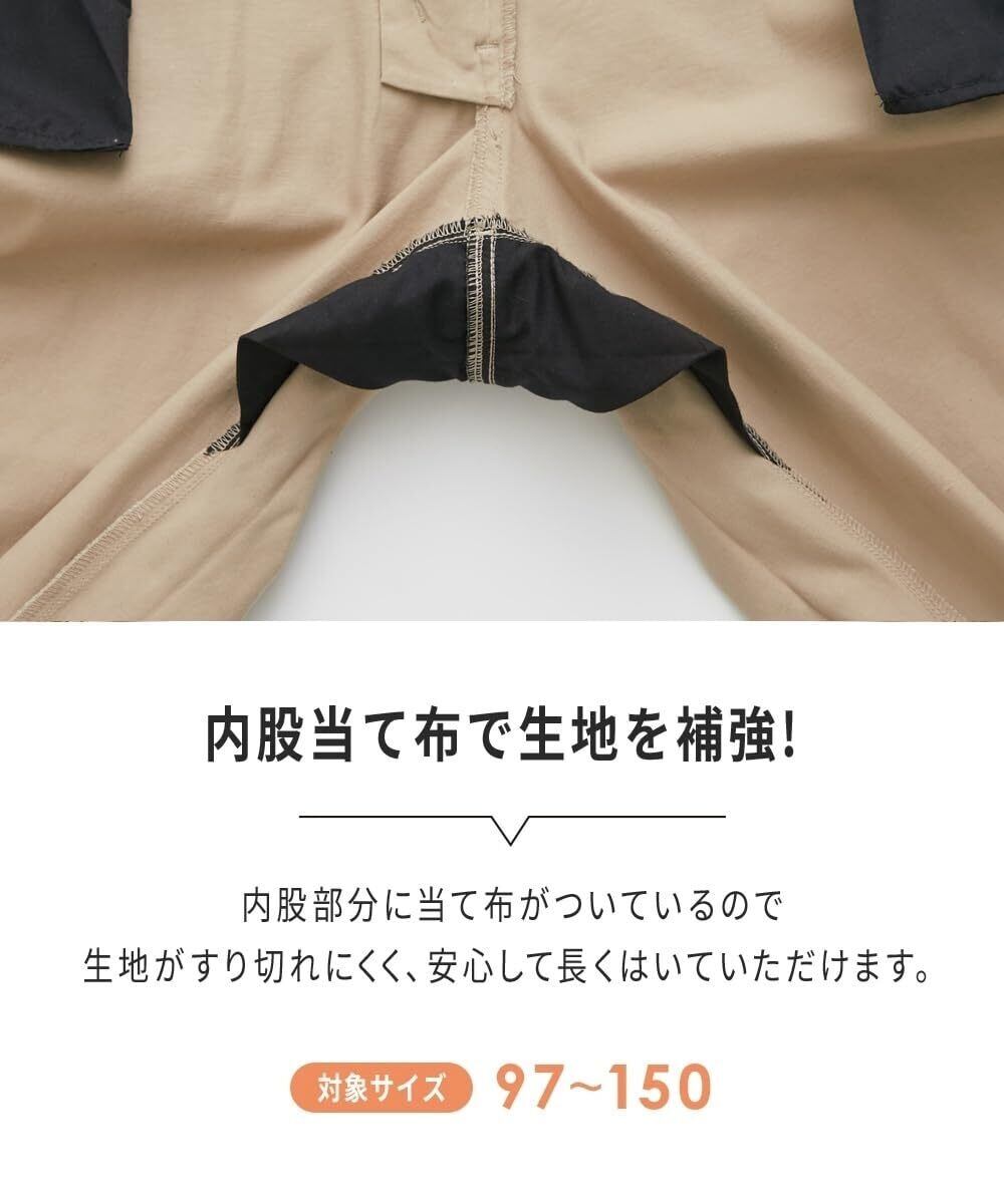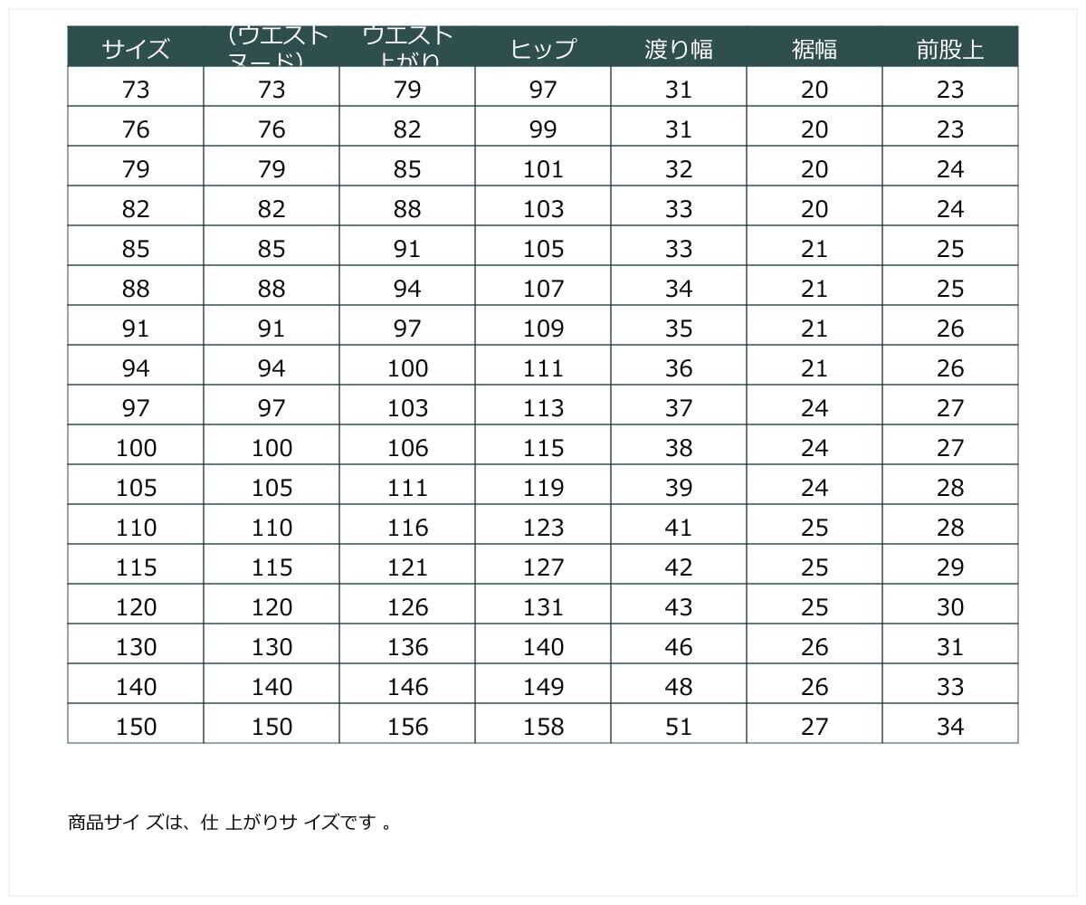 ウエスト97cm以上は内股部分に当て布付きで表地の擦り切れを軽減します。大きいサイズも展開しております。(73/76/79/82/85/88/91/94/97/100/105/110/115/120/130/140/150/160サイズ)