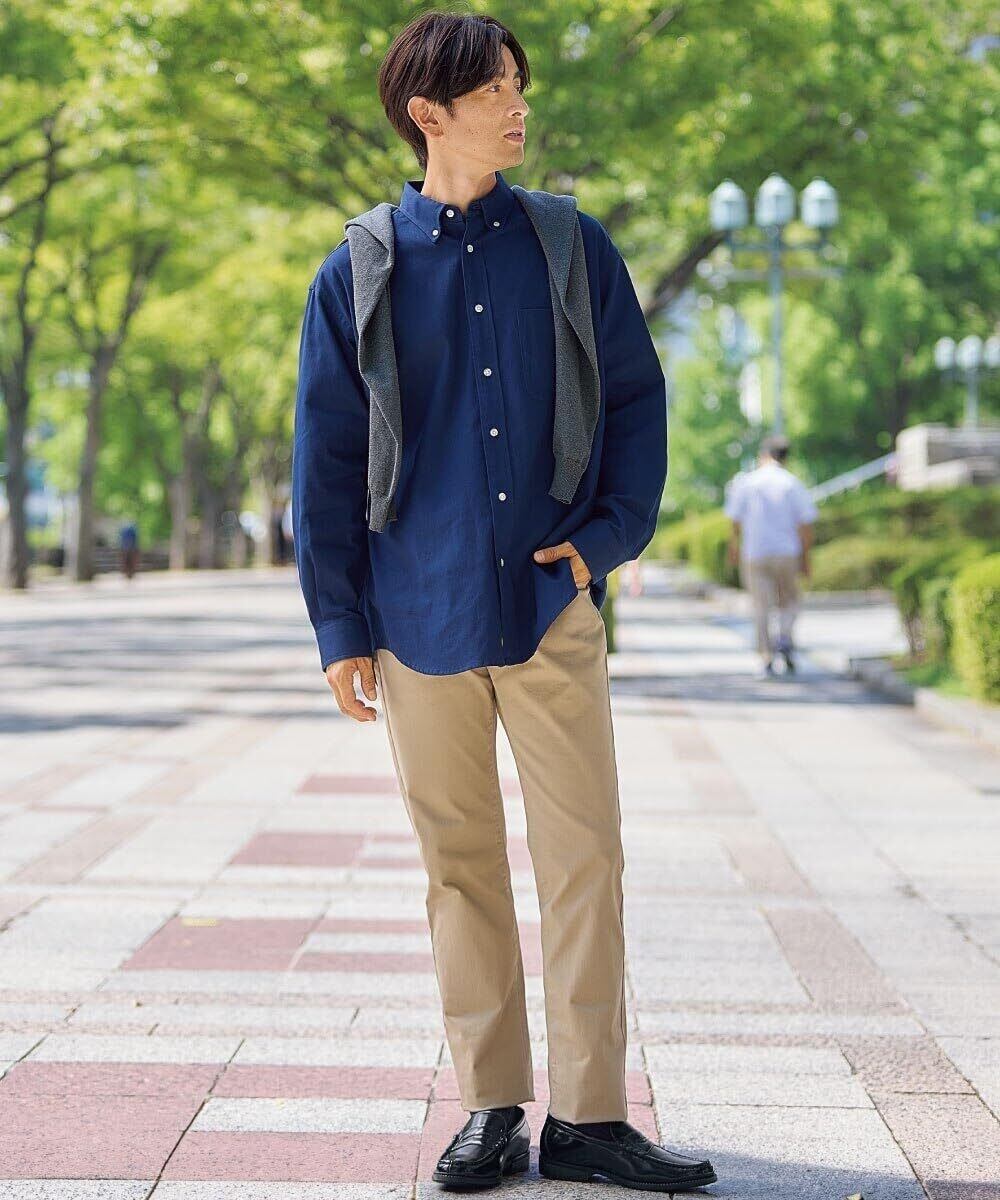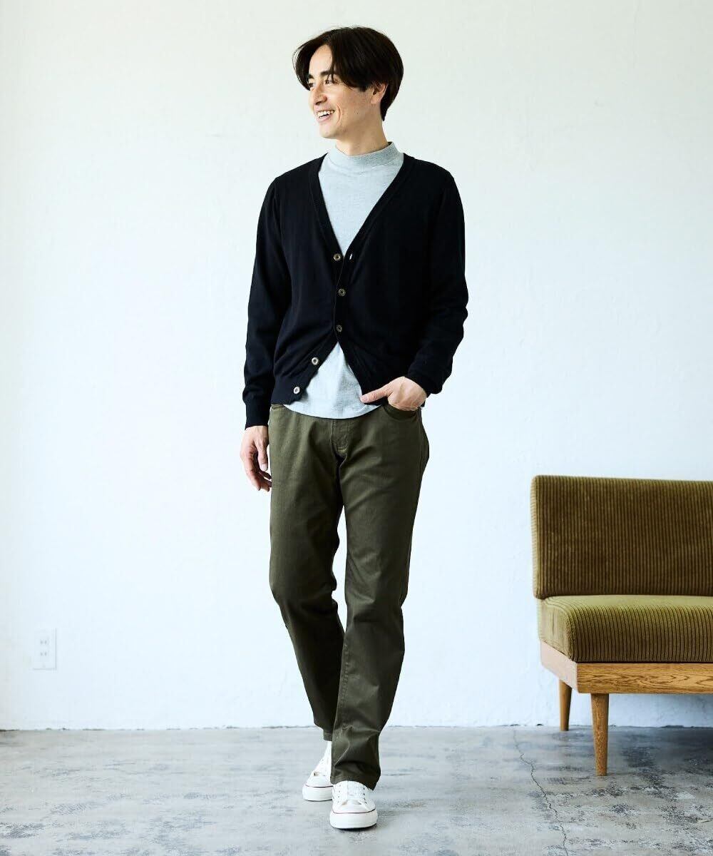 洗いざらし感が魅力のチノパンツ程よいフィット感のレギュラーシルエットで、着回しにも便利です