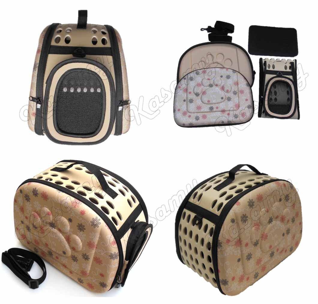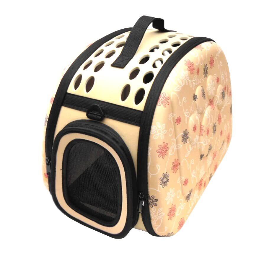 Kasamy ペットキャリーバッグ 折りたたみ ケース ショルダー 肩掛ベルト付 犬 猫 小動物 用 (M ベージュ 肉球)
