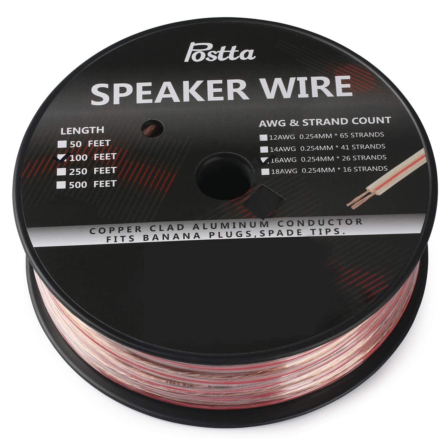 Postta スピーカーケーブル 銅とアルミのクラッド鋼素材 CCA スピーカーワイヤー 16ゲージ 30m