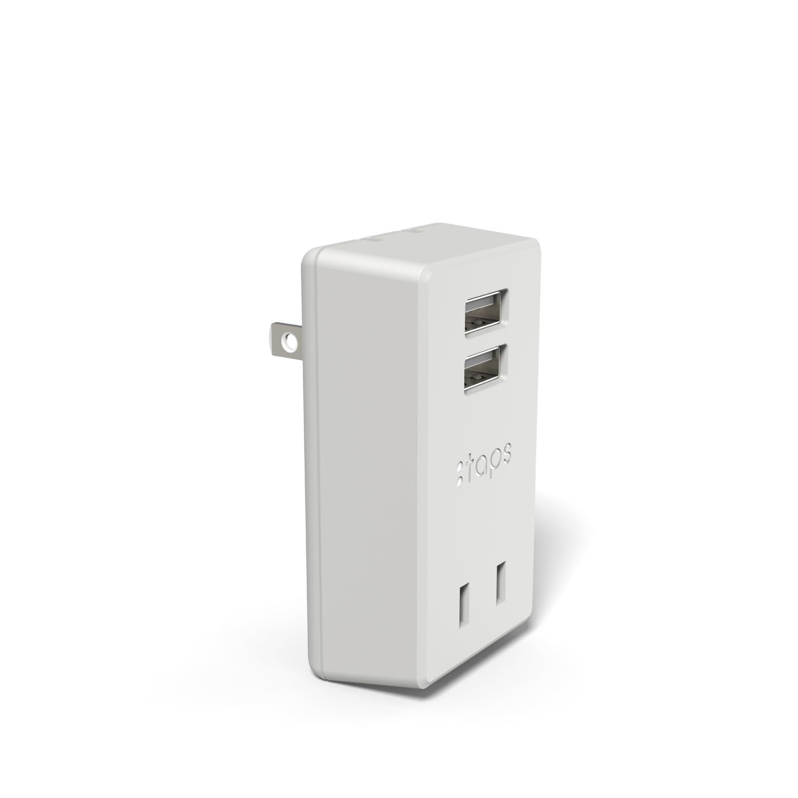 TOPLAND(トップランド) USB コンセント 電源タップ 雷ガード AC2個口 USB2ポート モバイルタップ 2.4A オートパワーシステム搭載 90度回転プラグ グレー STPP300-GR