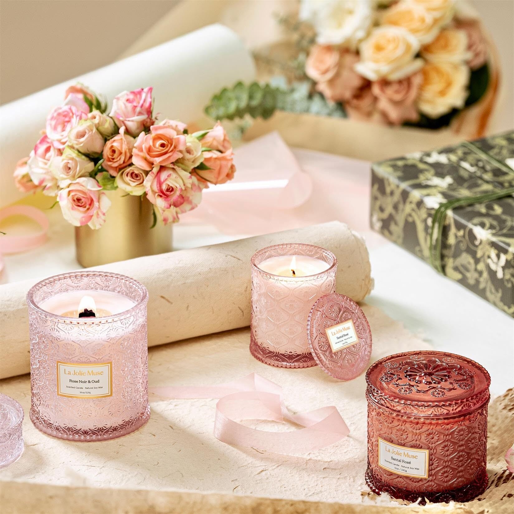LA JOLIE MUSE ローズ・ノワール&ウード アロマキャンドル ローズの香り 母の日の贈り物に 大容量 ソイキャンドル 木芯 539g