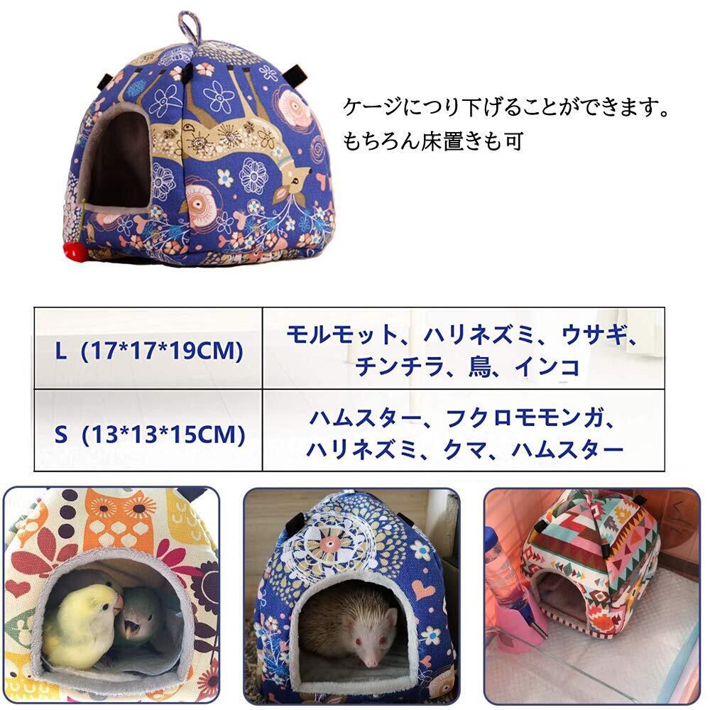 POTATO ハムスター ハウス ふわふわ家 ゲージ 吊り下げる鳥暖かい巣箱 ハムスターハンモック ハリネズミ ハウス ドーム型冬用ペットベッド 小動物ハウス 遊び場 寝床(Lサイズ-17x17cm,花海)