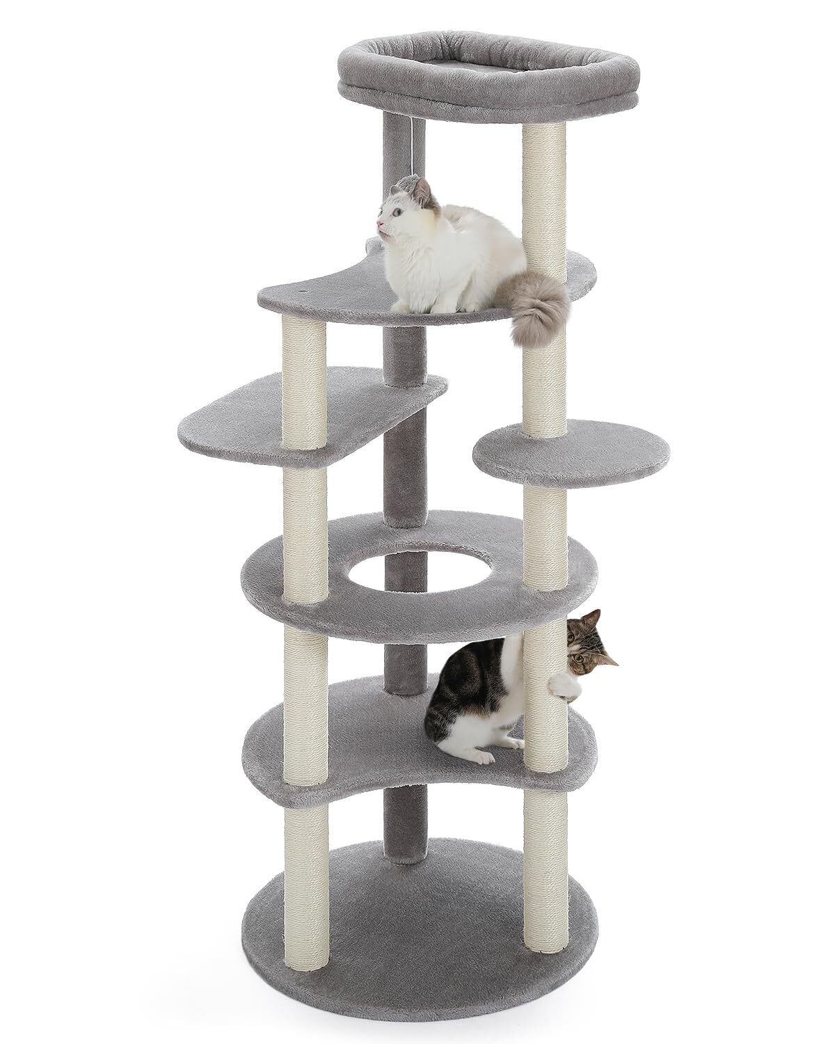 PETEPELA(ぺテぺラ) キャットタワー スリム 大型猫用 猫タワー 多頭飼い おしゃれ かわいい インテリア 据置 麻紐 爪とぎ おもちゃ コンパクト 省スペース 人気 運動不足解消 倒れ防止策 -高さ154cm グレー
