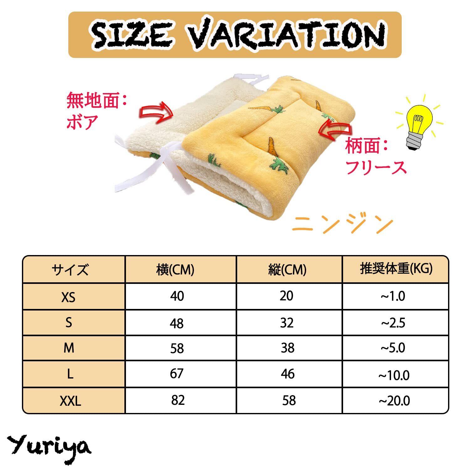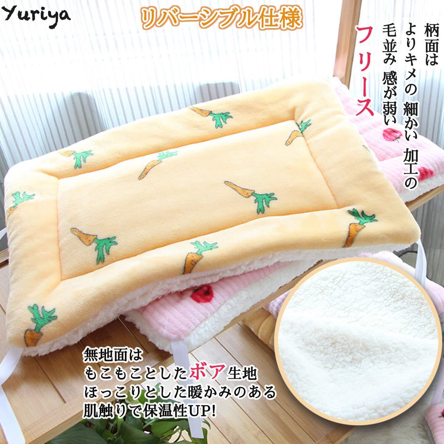 Yuriya ペット マット ケージ用 猫 ベッド 落ちない 四隅紐付き ふわふわ ボア キャンバス リバーシブル スクエア型 暖かい 柔らかい 洗える 犬 布団 防寒 通年 ニンジン 32*48cm