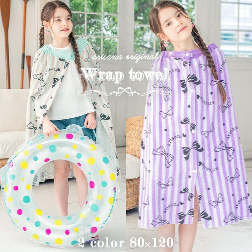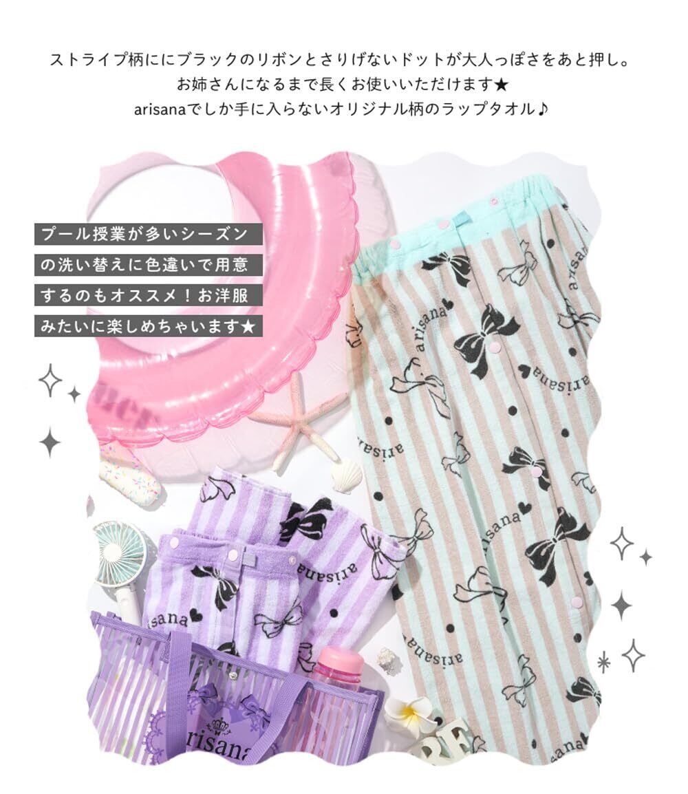 [アリサナ] ラップタオル キッズ 女の子 子供 巻きタオル リボン ストライプ柄