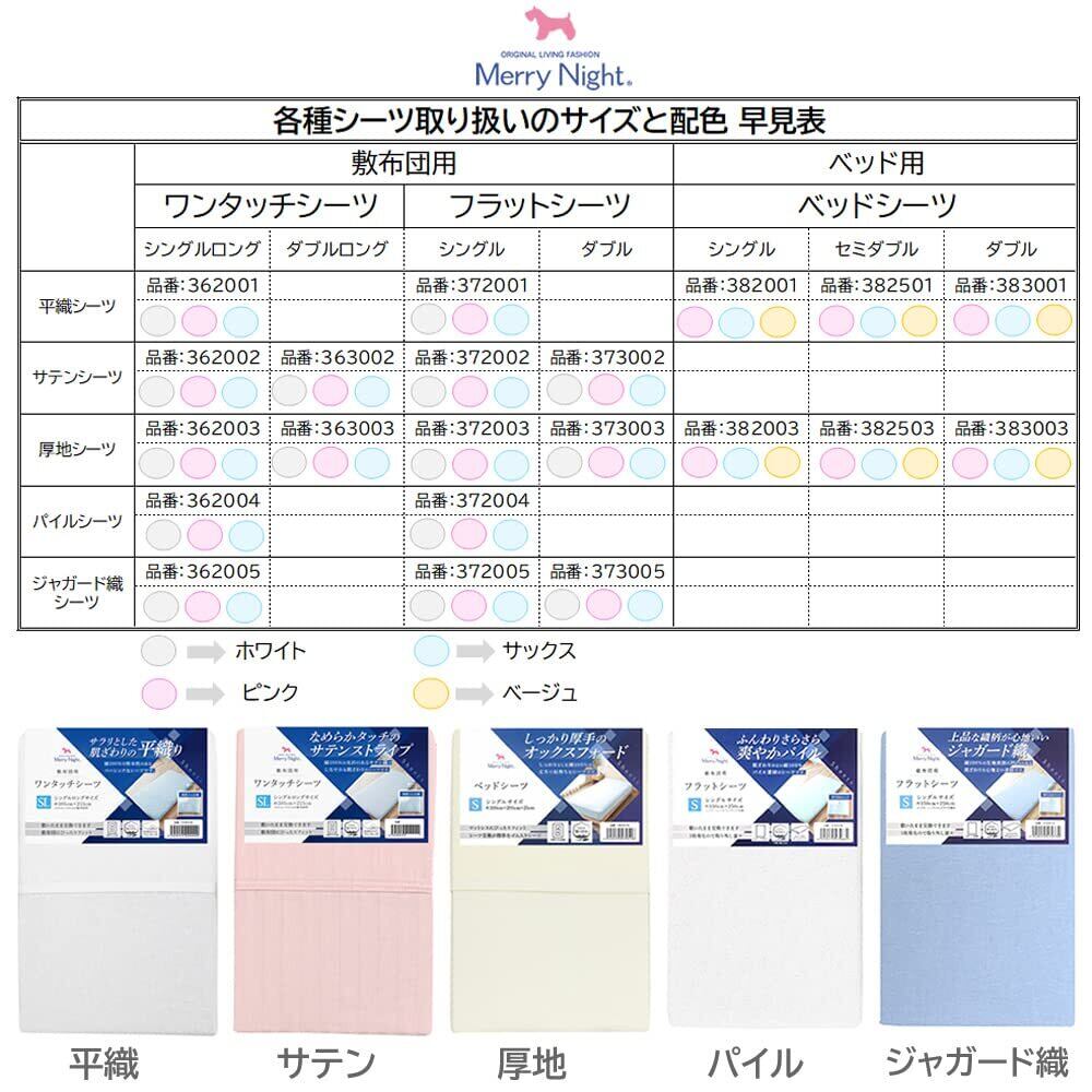 【数量限定】メリーナイト シーツ フラットシーツ 平織生地 ホワイト 敷布団用 シングル 約150×250cm 綿100% ベーシック生地 サラリとした肌ざわり オールシーズン 洗える 372001-06 | わくわくSHOP