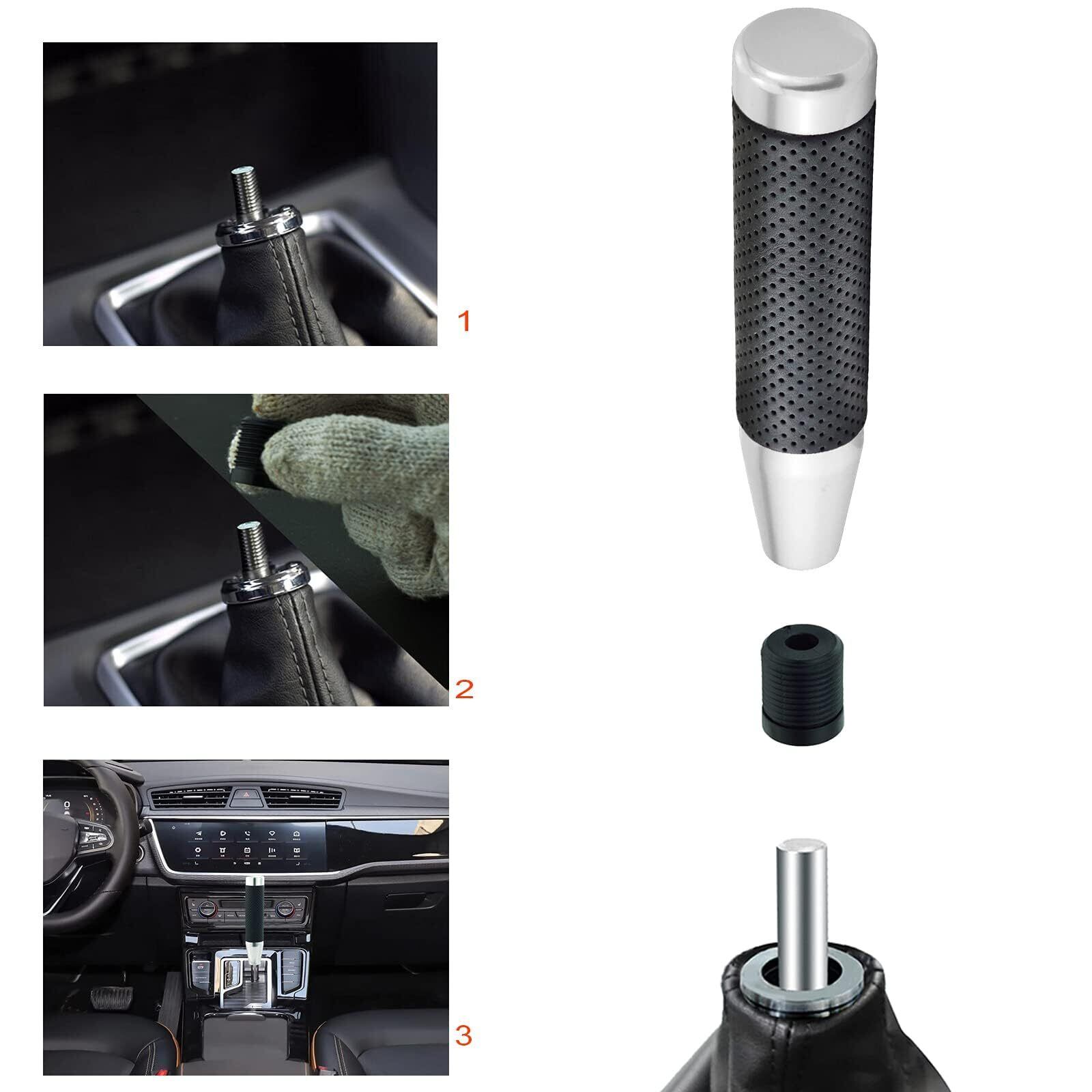 Lunsom 180mm シフトノブ ロング 金属製 シフトレバー ギアシフトノブ PUレザー オートマとマニュアル車に適用します (シルバー)