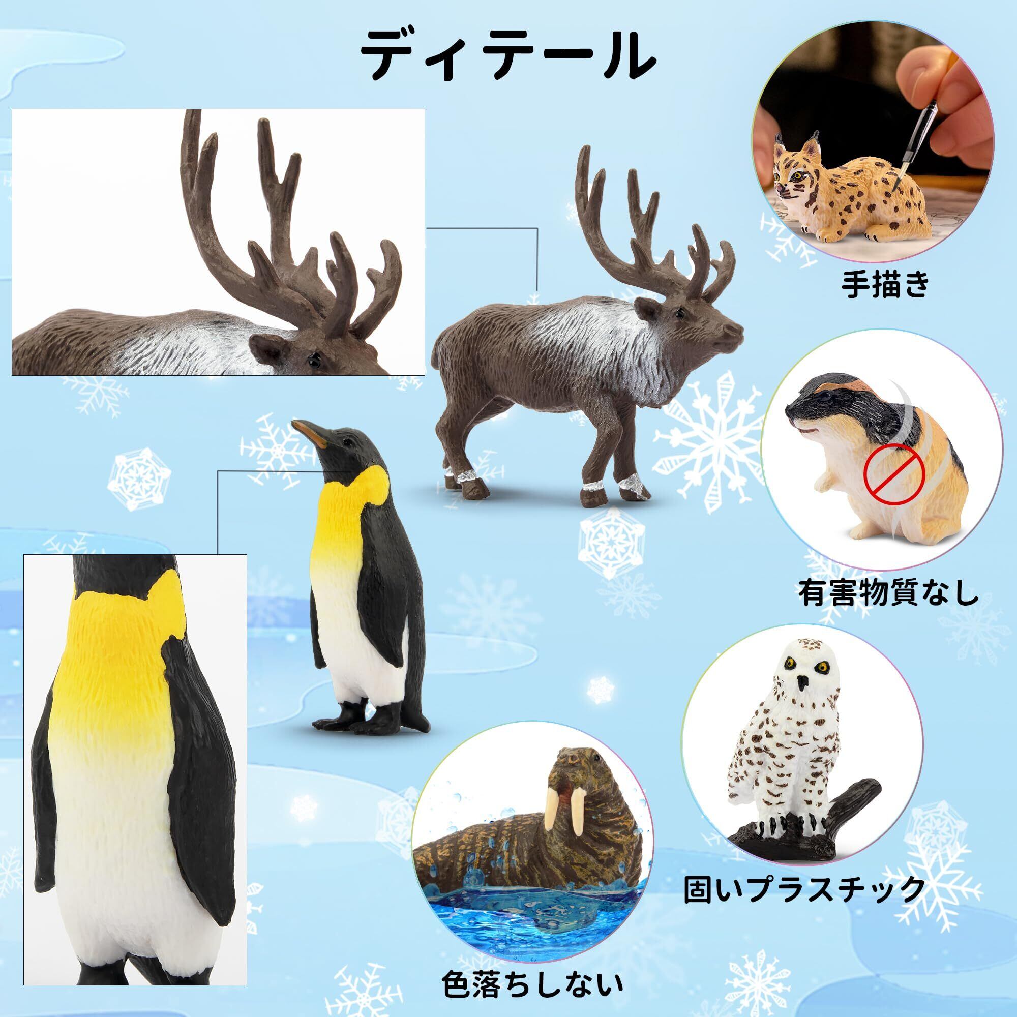 TOYMANY 14PCSミニ動物フィギュア 北極動物フィギュアセット 北極圏 リアルな動物模型 ミニモデル 人気動物 おもちゃ 玩具 誕生日プレゼント 飾り物 クリスマス 新年 コレクション 6歳以上