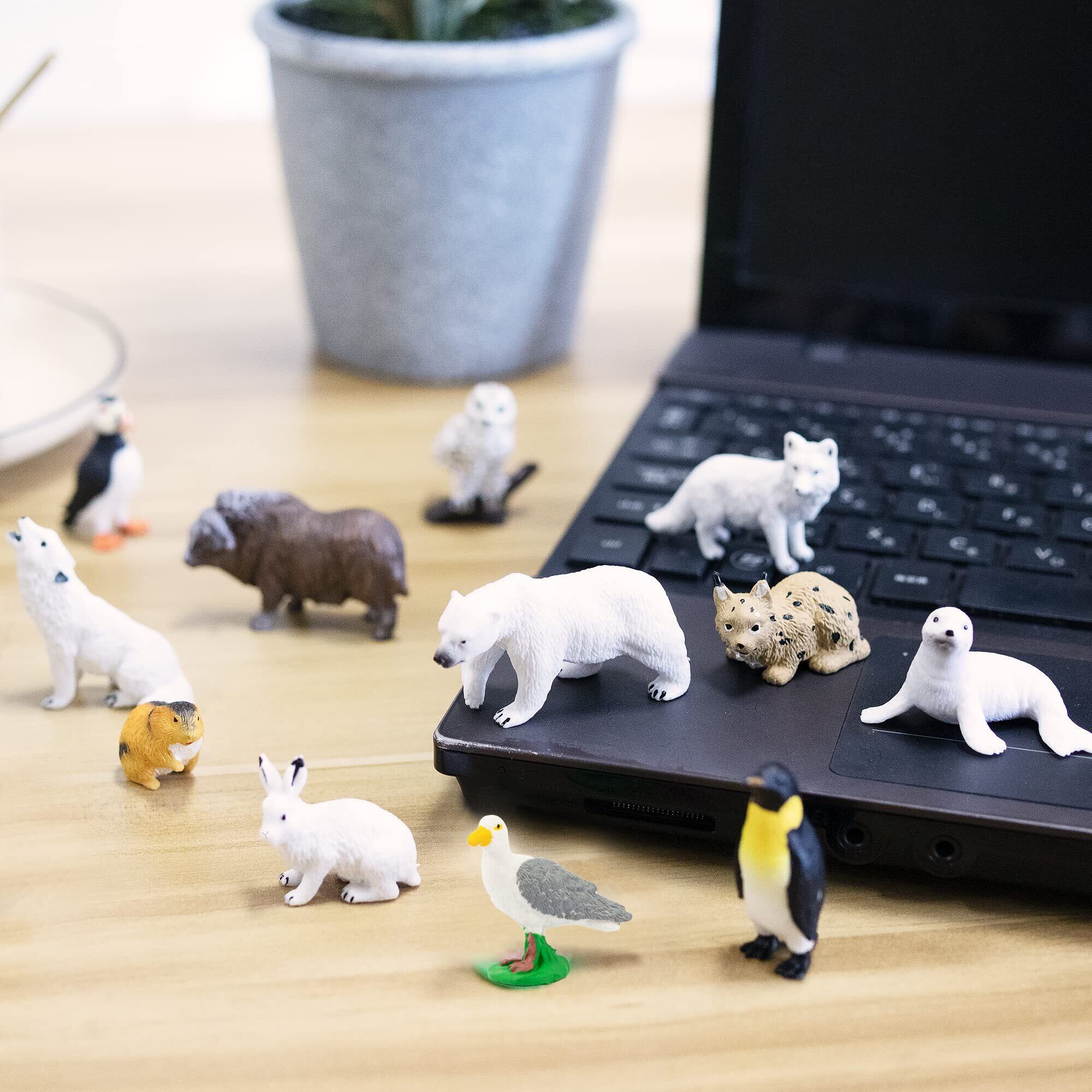 豊富なセット内容・14種類入:ミニ北極動物フィギュアセットです。北極に生息するミニ動物です。小さな動物園のようです。サイズは1.9CM~5.7CMです。タテゴトアザラシ、セイウチ、トナカイ、レミング、ジャコウウシ、オオヤマネコ、ホッキョクオオカミ、ホッキョクウサギ、ホッキョクグマ、ペンギン、シロフクロウ、シロカモメ、ホッキョクギツネ、ニシツノメドリがあります。