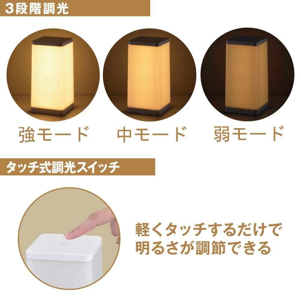 強/中/弱モードの3段階調光式で、常夜灯としても使用できます● 軽くタッチするだけで明るさが調節できる、タッチ式調光スイッチ● 丈夫で汚れにくい、ポリカーボネート製セード