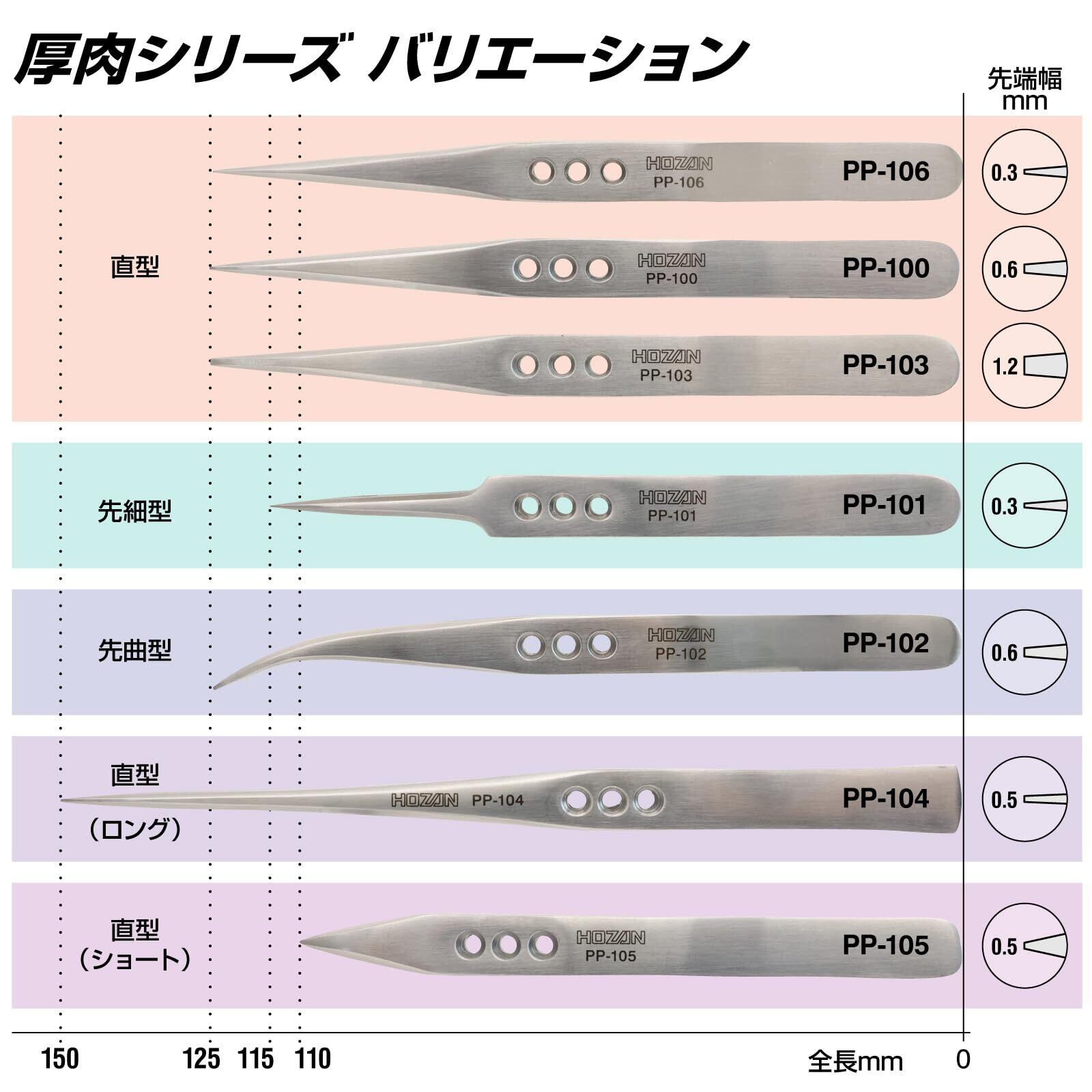 ホーザン(HOZAN) ピンセット 厚肉仕上げ 板厚2.8mm 全長125mm 開き幅8mm 先端幅0.6mm 先曲がり型 PP-102