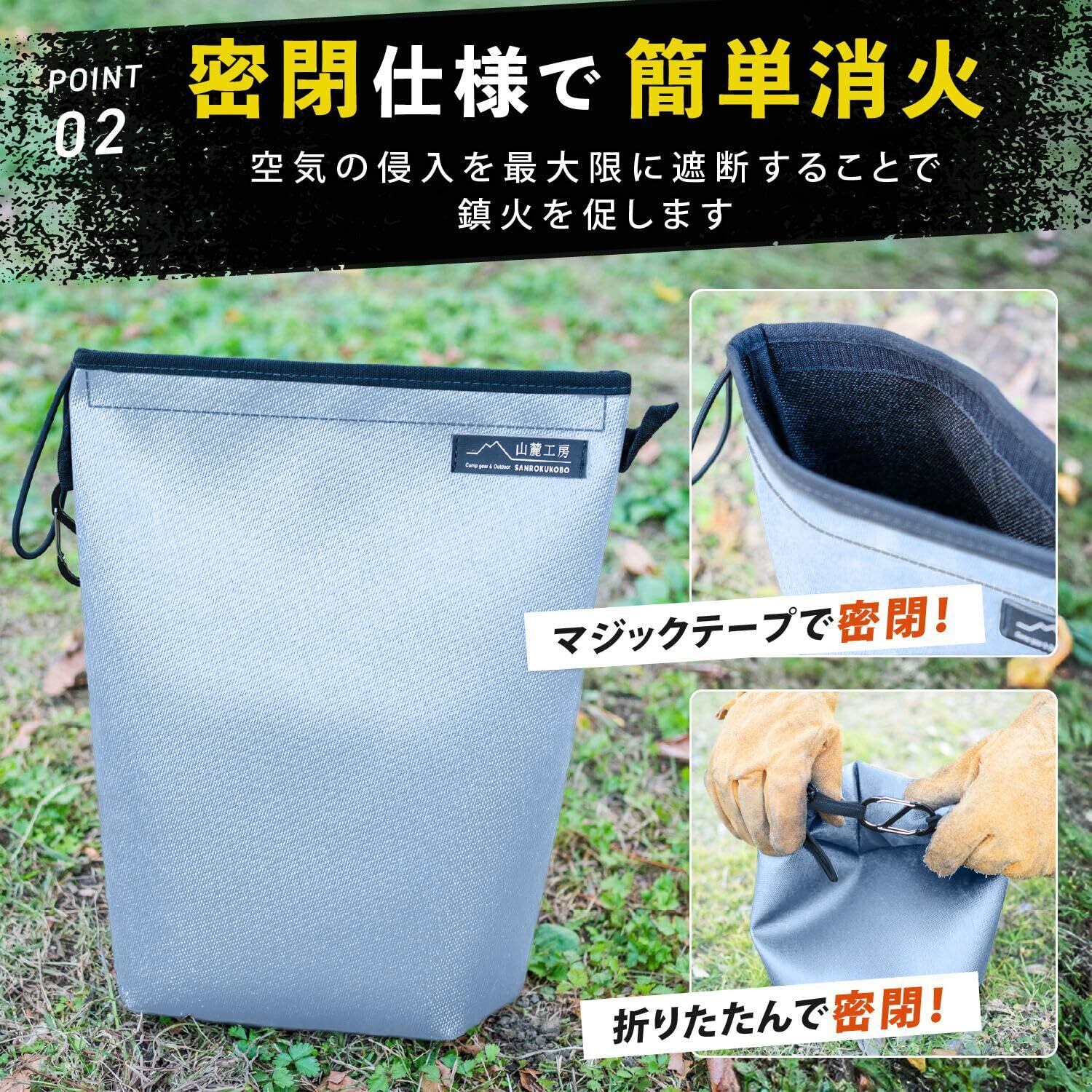 ️【焚き火の悩みを解決!】山麓工房の火消し袋は使用後の炭や薪の燃えカスを入れたり、安心安全に持ち帰れる、もはやアウトドアに必須のアイテム!キャンプやバーベキュー等での焚き火終了後に完全に消化し、薪や炭を安全に持ち帰れます。