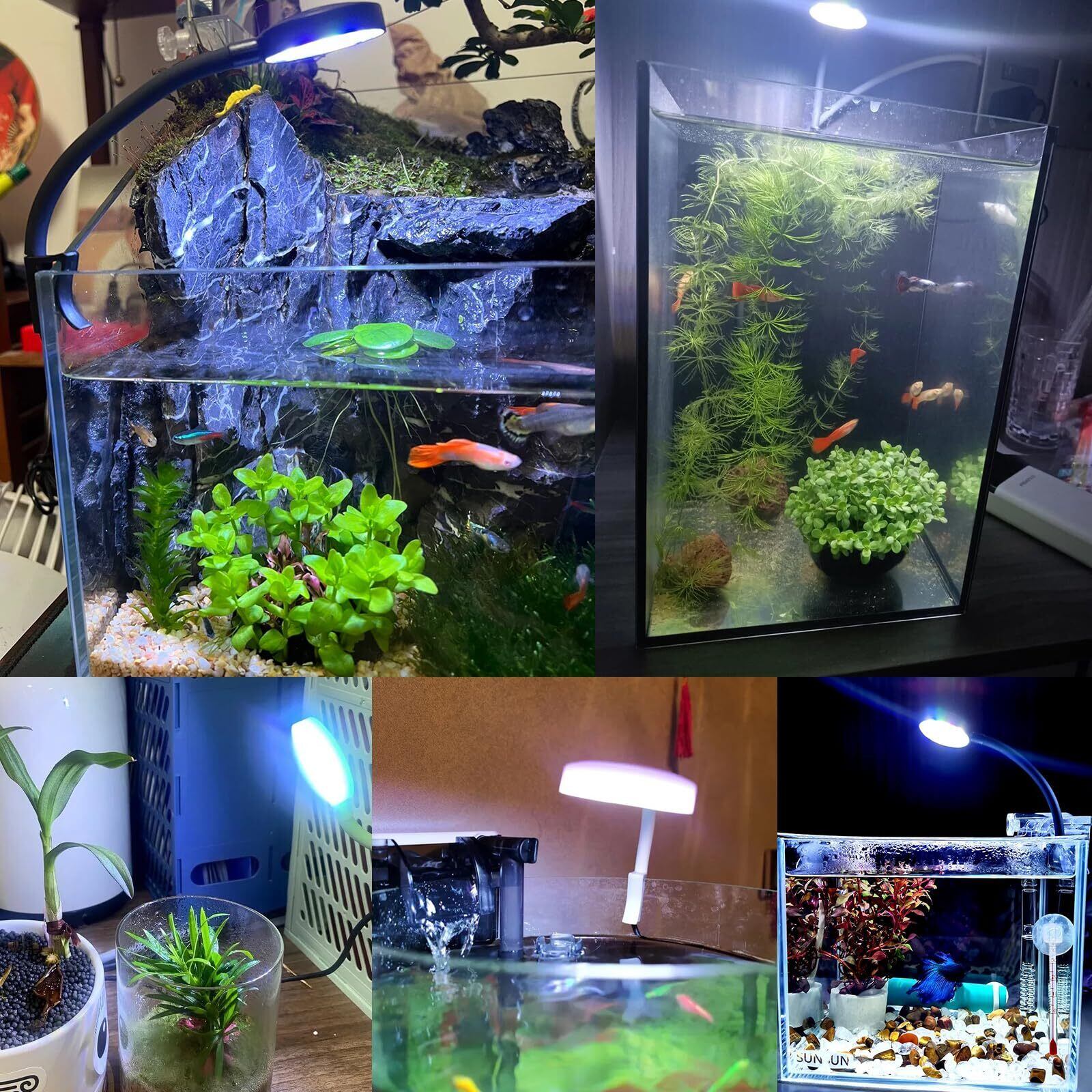 【調整可能な照明角度】この小型水槽クリップライトは、360度調整できる柔軟な回転ホース設計を採用しています、さまざまな照明ニーズを簡単に満たし。壮大な水中シーンを簡単かつ美しく体験できます。
