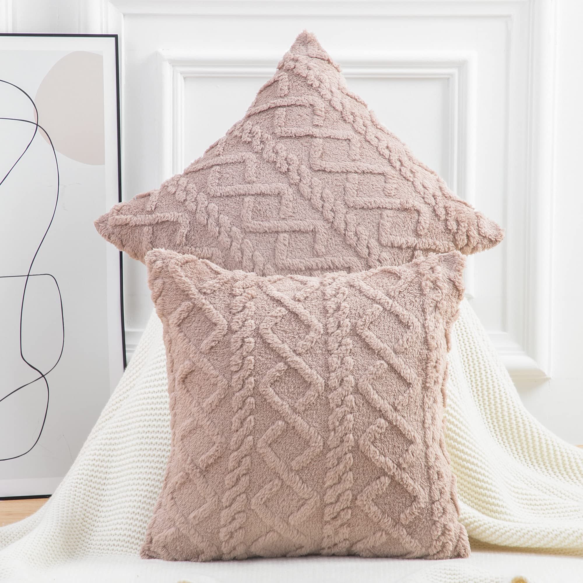 Madizz クッションカバー 2枚セット 55×55cm ブラウン 北欧 柔らかい 短いウール フリース 背当て 装飾 枕カバー 座布団カバー ソファ用 寝室用