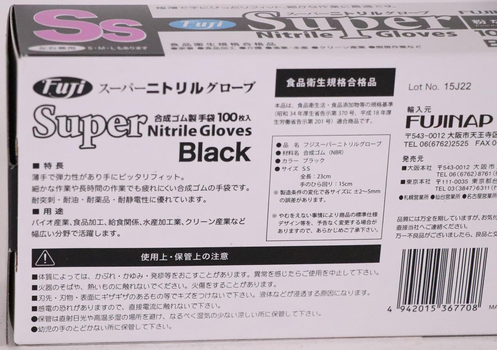フジ スーパーニトリルグローブ 粉無し ブラック SS 100枚入り