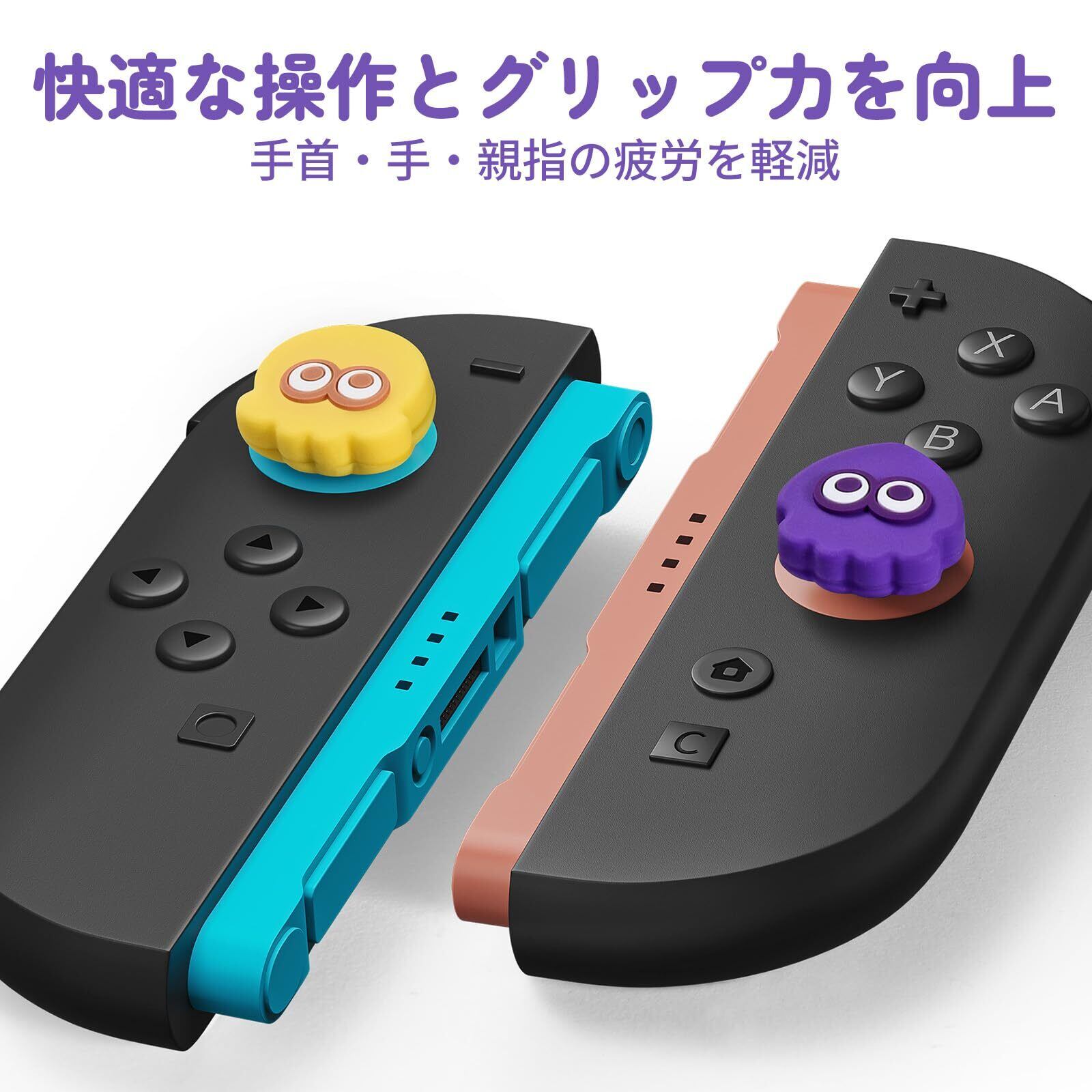 FUNLAB Switch 2 サムグリップ ジョイスティックキャップ Nintendo Switch 2/ Proコントローラー対応 かわいいシリコンアナログスティックカバー 4個 - イエロー&パープル、タコ&イカ。