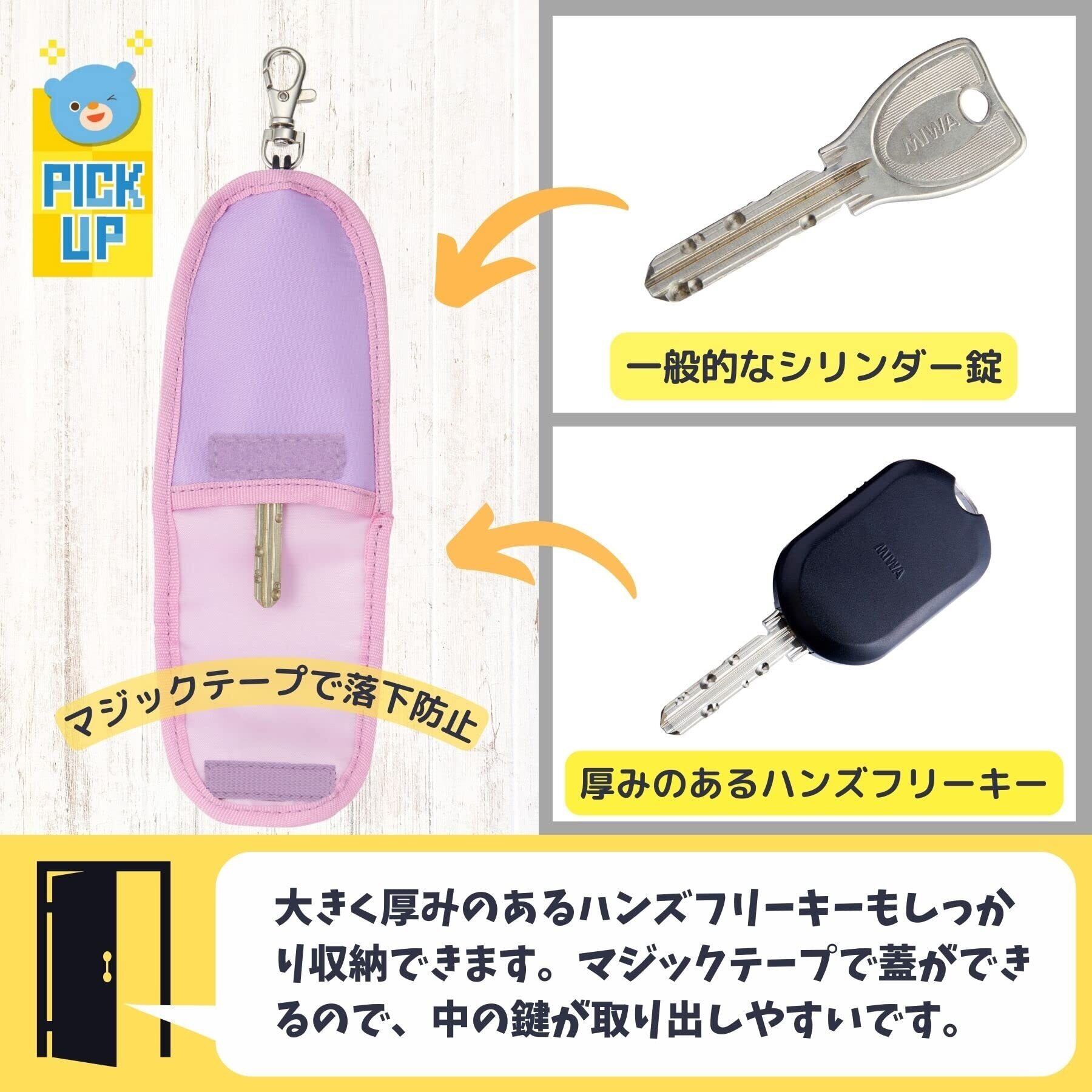 ハンズフリーキーも入って鍵が出しやすい通学用キーケース