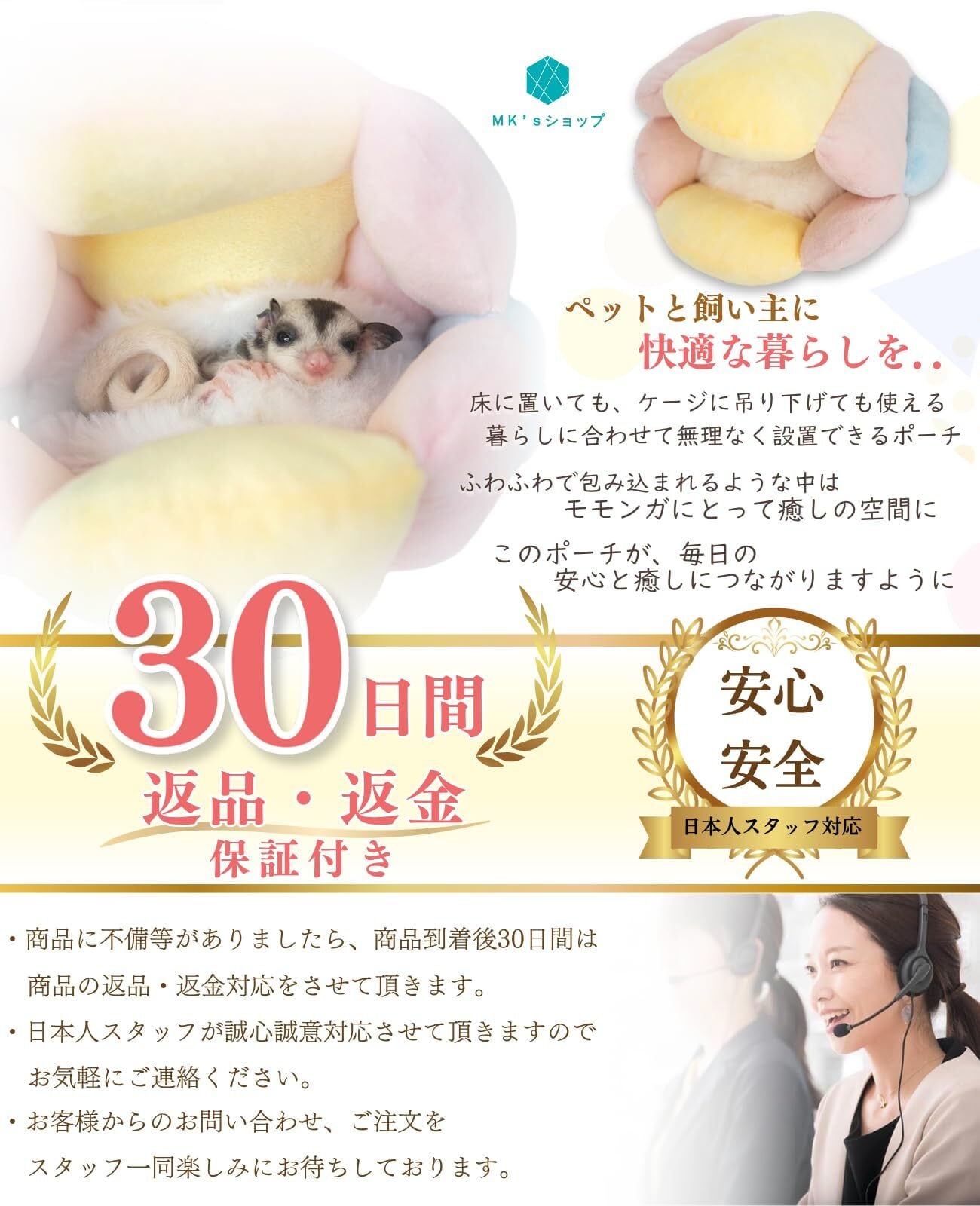 【2Wayで使える 癒しの空間】モモンガ ポーチ 大きめ 吊り下げ フクロモモンガ ケージ かわいい MK’sショップ