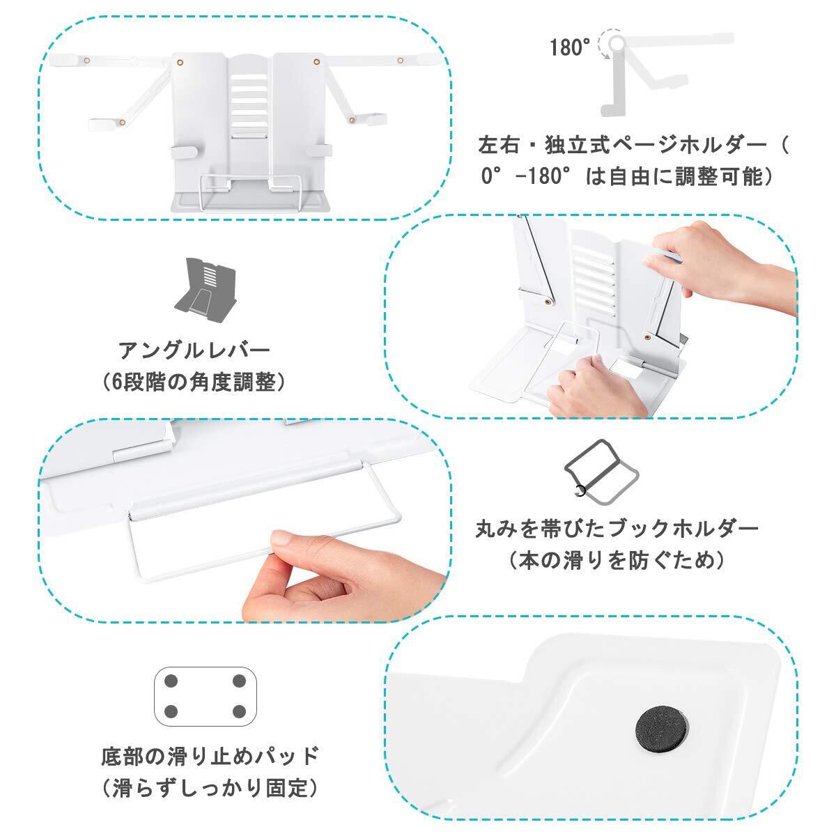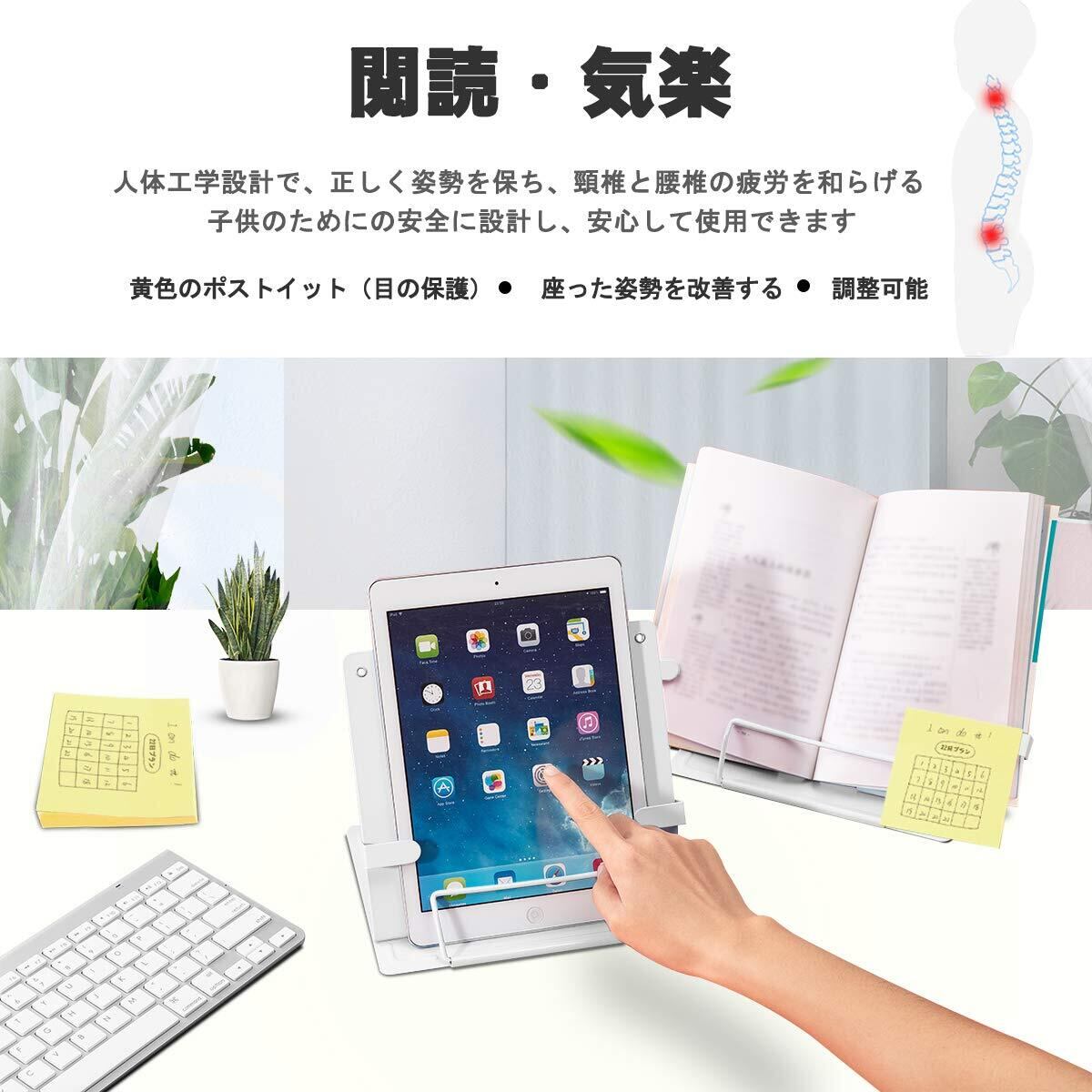 Palumma ブック スタンド 書見台 ブック スタンド 卓上 読書 スタンド 鉄製 より耐久性 広げて厚く 折畳み 肩こり解消 目の保護 ポストイット付き (ホワイト)