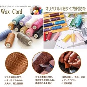 【高品質ワックスコード】 糸の中にしっかりロウが入っているので、通常のナイロン糸より強度も強く無駄に多量のロウが表面についていない為、縫いやすくまた縫った糸の発色も良くなるように加工してあります。麻糸よりもすれに強く、縫った時から毛羽立つような事はないです。
