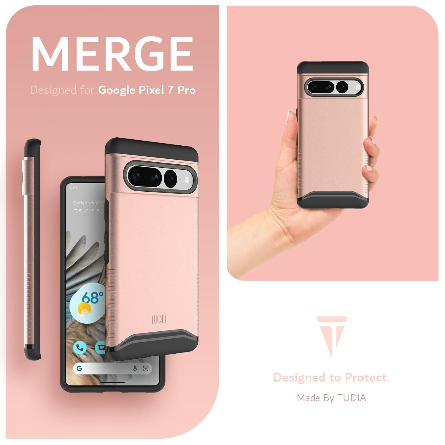 「米軍MIL規格・2層保護」TUDIA Pixel 7 Pro 用 ケース、「MERGE」米軍MIL規格取得 耐衝撃性超薄型ハードTPU保護 Google Pixel 7 Pro 対応 ケース - ローズゴールド