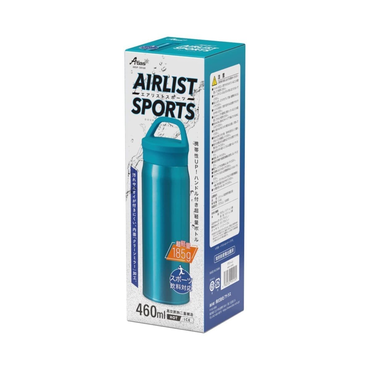 アトラス 水筒 460ml 保温 保冷 真空断熱 スポーツドリンク対応 マグボトル グリーン エアリストスポーツ 白湯 ARSP-501GR