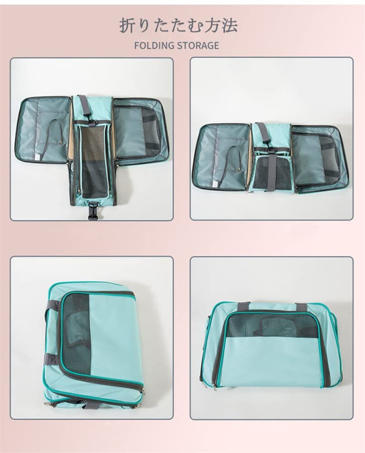 LeafIn ペット ショルダーバッグ バックパック ペットバッグ キャリーバッグ 猫用 犬用 ペット用品 折りたたみ 折り畳み 小型犬 中型犬 トリミング 防災 通院 避難用 (064-ブルー)