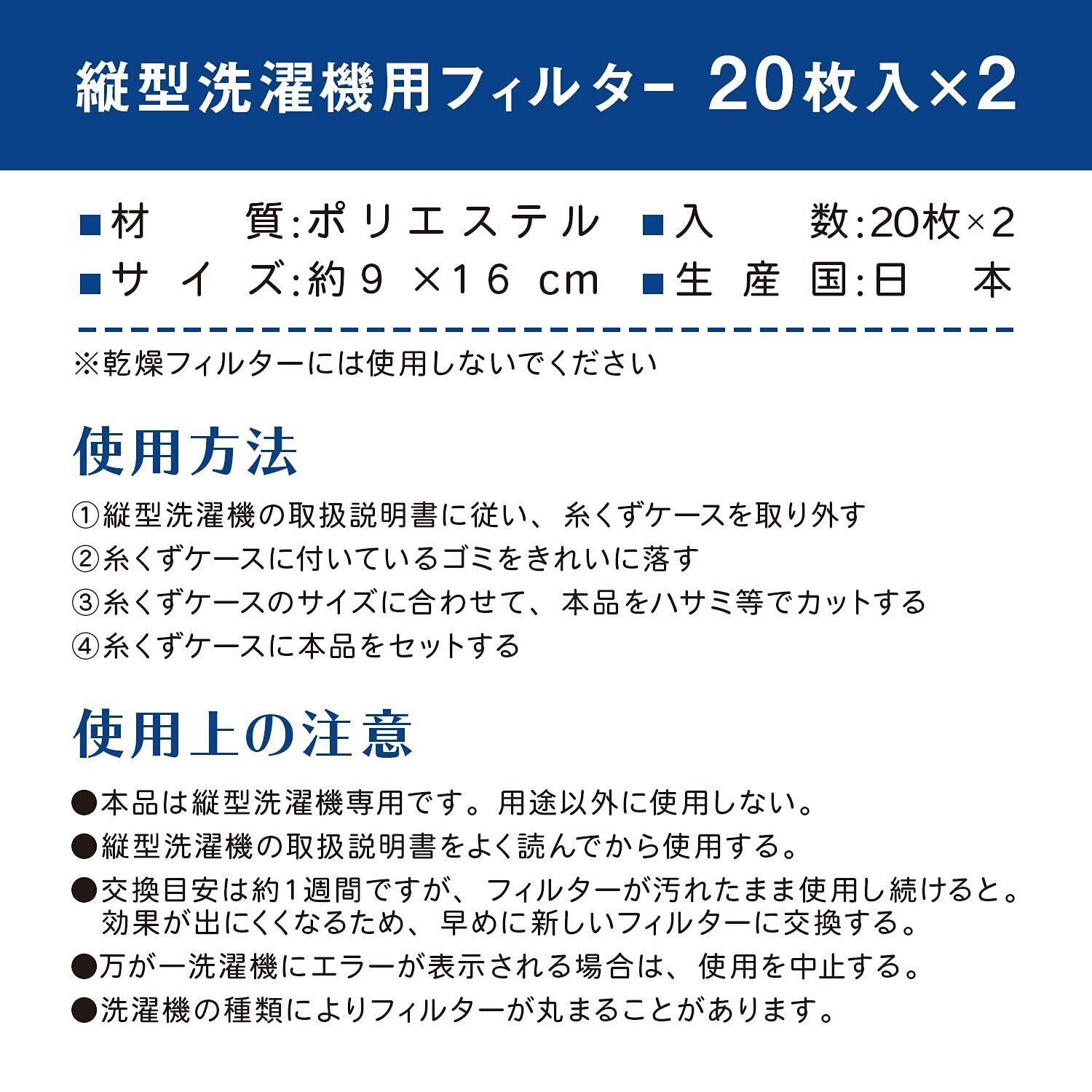 コモライフ 縦型洗濯機用フィルター 20枚入×2 洗濯機 糸くずケース 掃除 ゴミ取り 日本製
