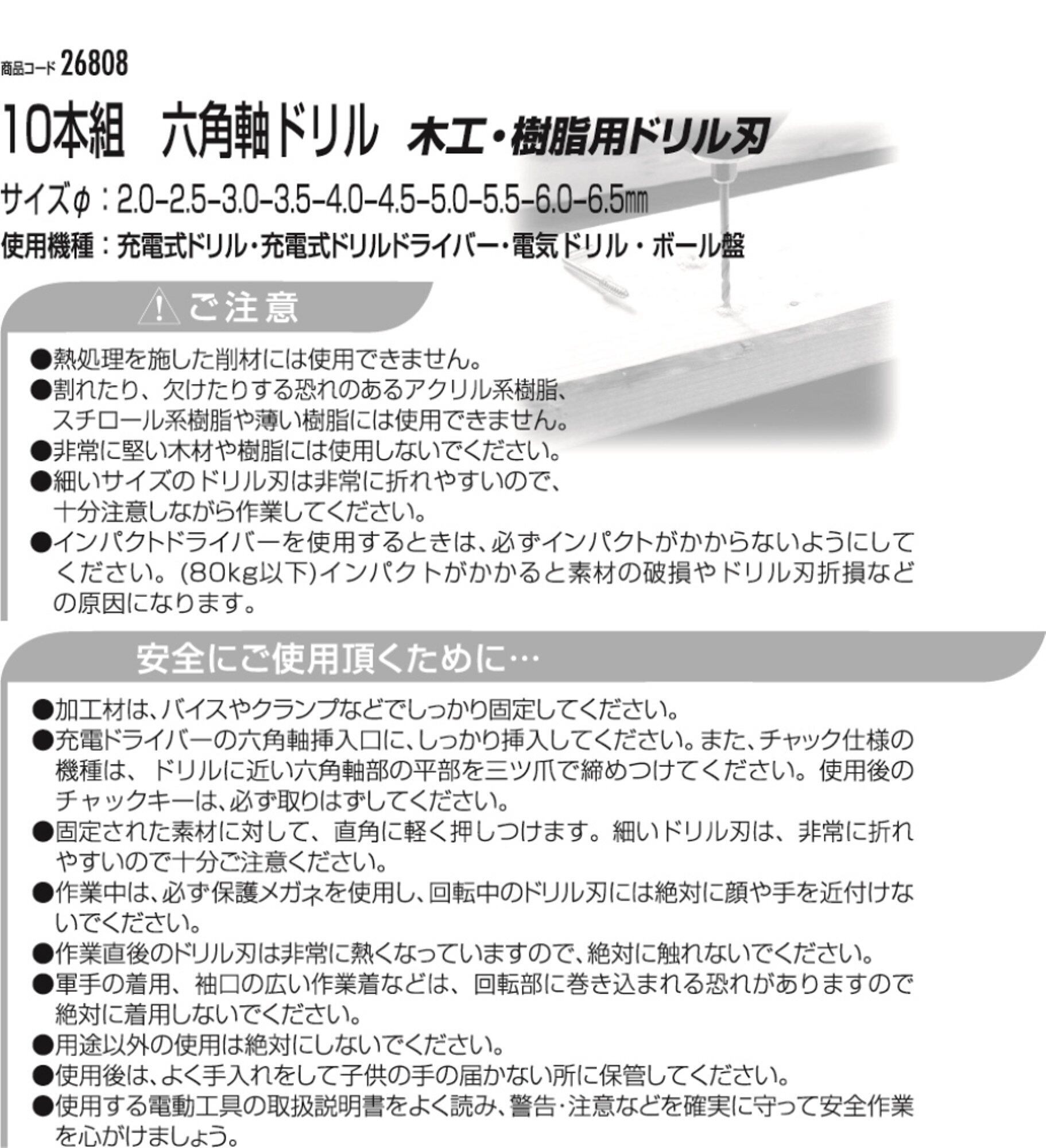 セット内容:直径2.0・2.5・3.0・3.5・4.0・4.5・5.0・5.5・6.0・6.5mm