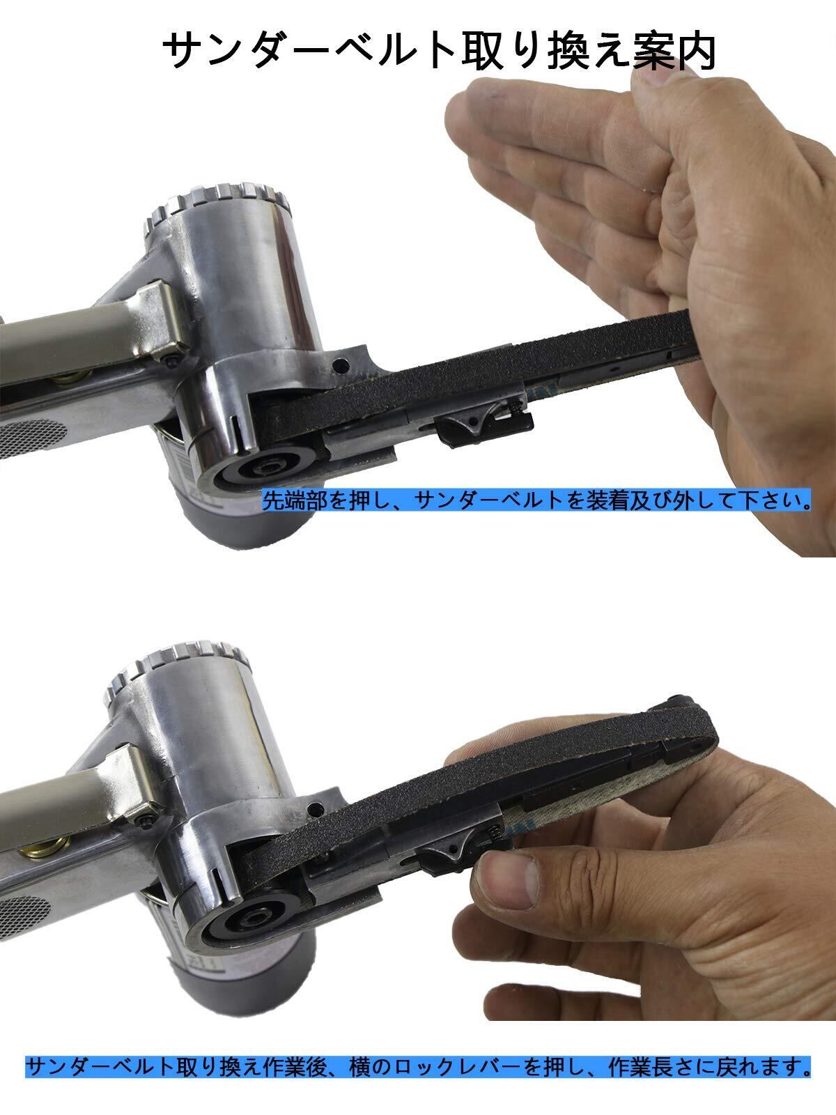 #60、#80、#100合計3本のベルト付属、到着後すぐに使えます。ベルト交換には工具不要。