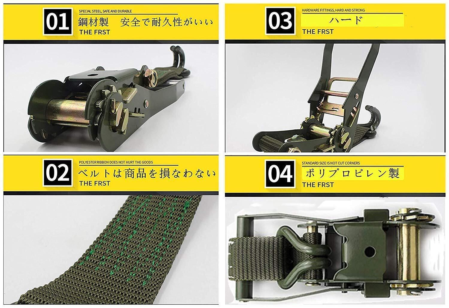 ラチェット機能付きで、しっかりと荷物の締め付けが行えます ポリエステル素材を使用し耐久性は抜群で商品を損なわない。