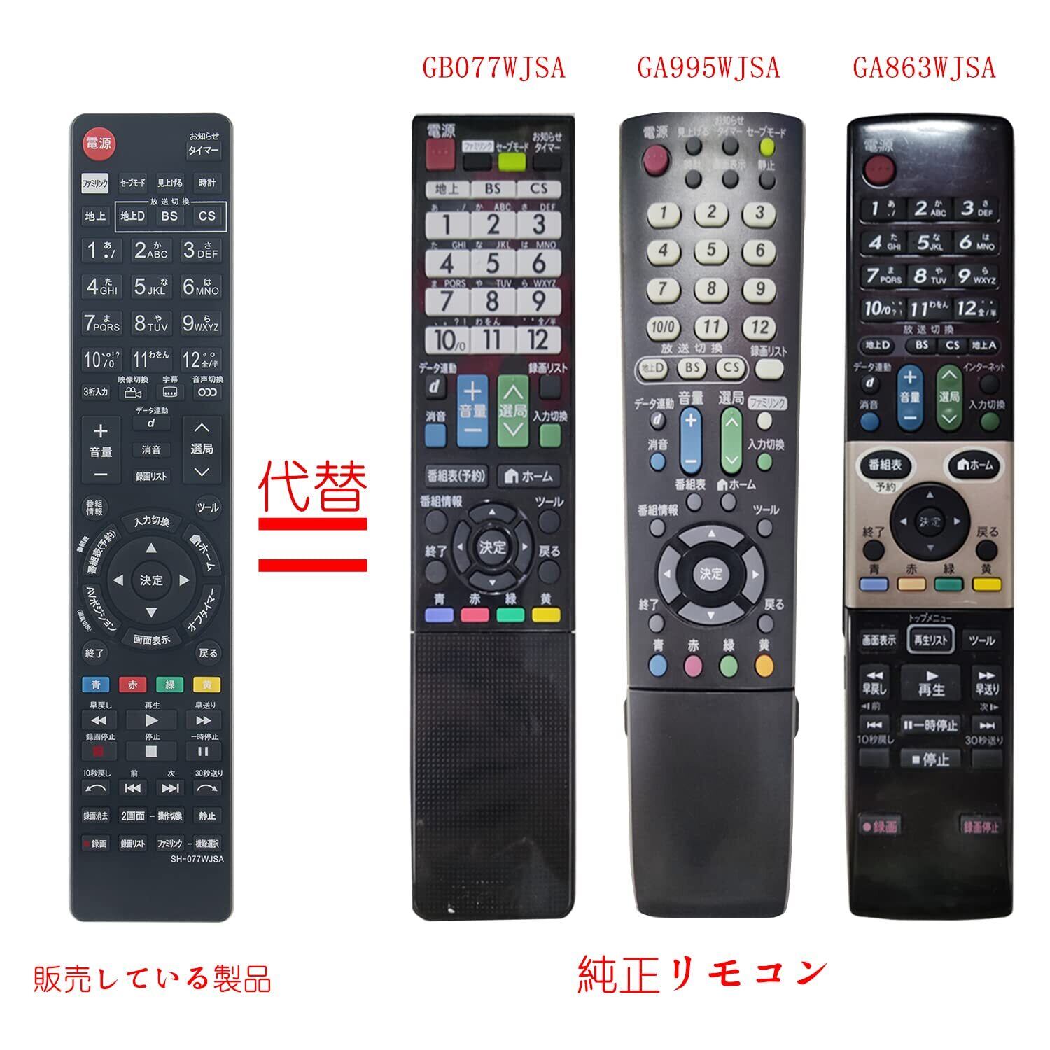 ①このリモコンは「代用リモコン」です。②純正リモコに付いているボタンが設置されており、主な機能は使用できます。※ご利用の機種によって、このリモコンにないボタンがございます。このリモコンのボタンの詳細は商品ページに掲載された画像をご参考ください。