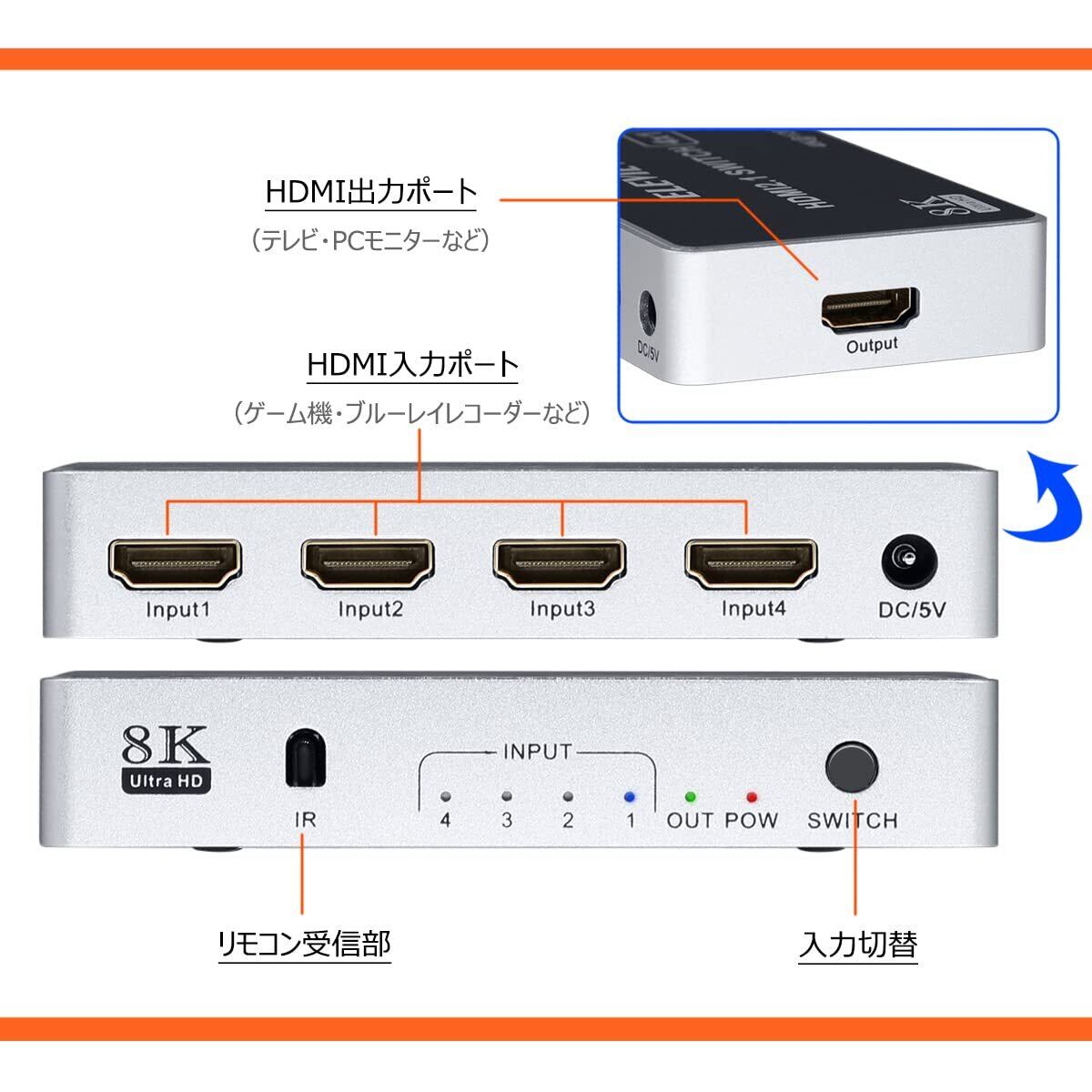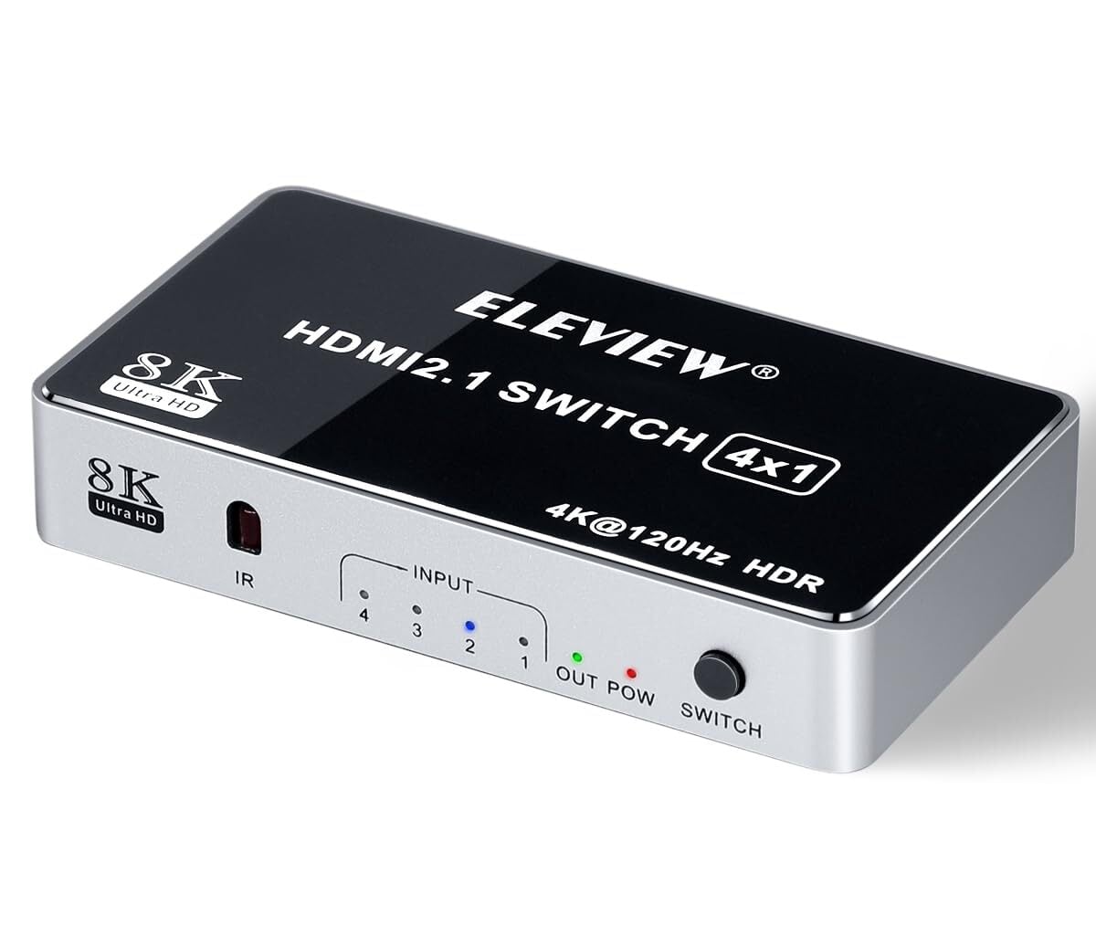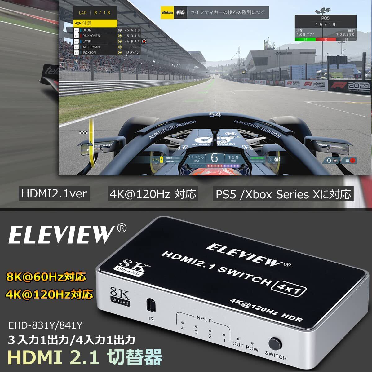 ELEVIEW HDMI 2.1 切替器 セレクター 4入力1出力 4K@120Hz 8K@60Hz 48Gbps HDR HDCP2.3対応 | PS5 /XBOX Series X/Nintendo Switchなどに適用 リモコン付き セルフパワー/バスパワー 自動切換 EHD-841Y