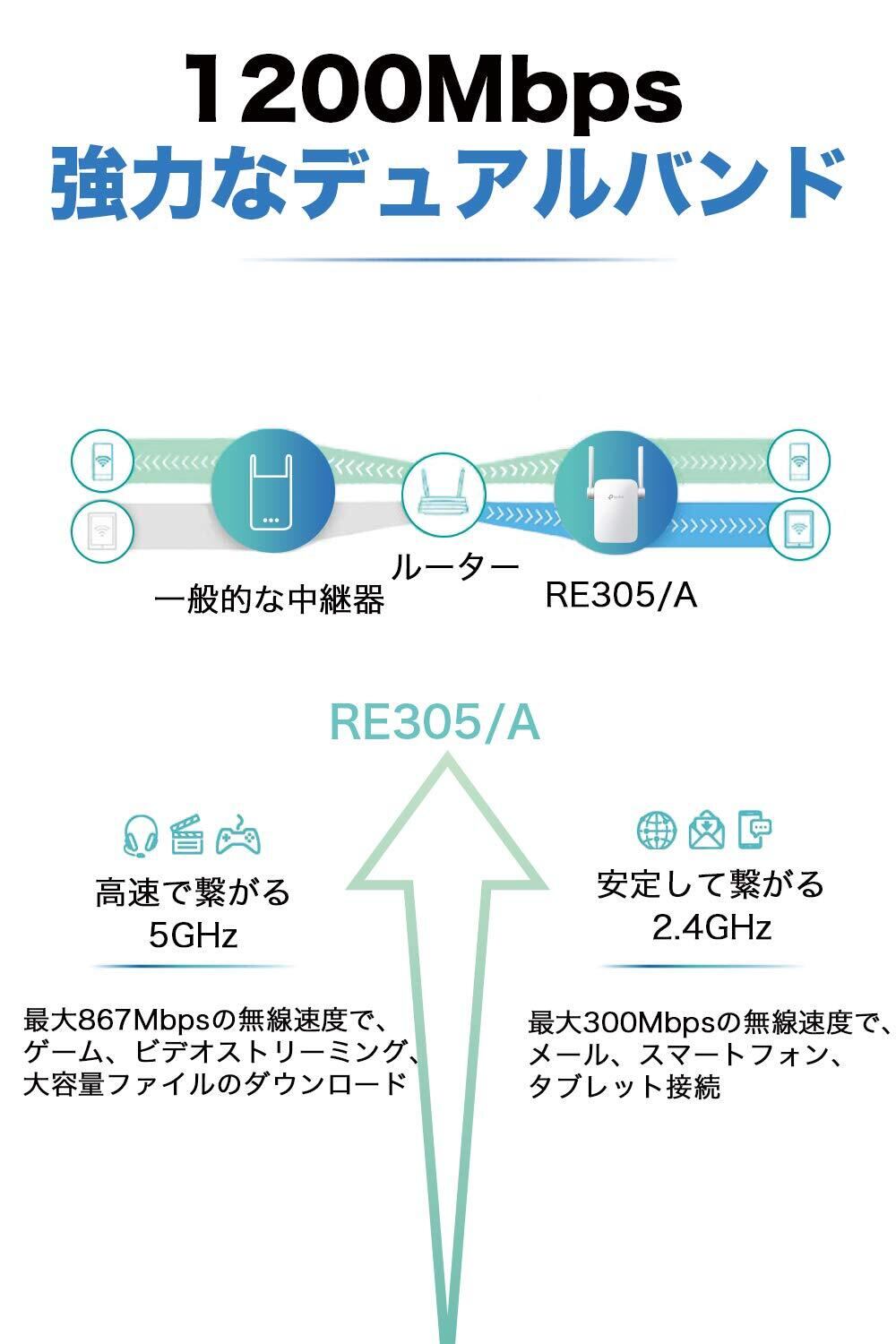 TP-Link WiFi中継器 AC1200 中継器 OneMesh対応 無線LAN 中継機 867 + 300Mbps ハイパワー ブリッジ デュアルバンド APモード搭載 中継器