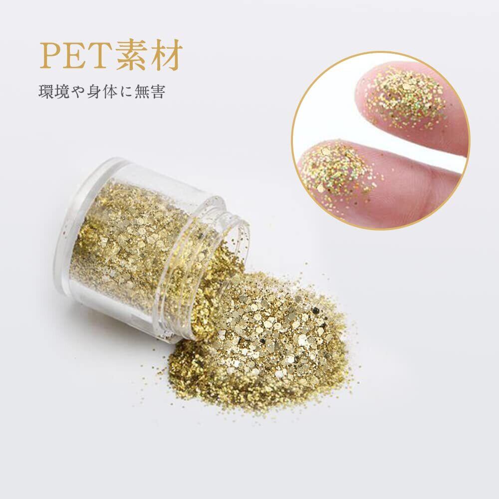 YFFSFDC ラメホログラム 18色セット キラキラ ネイルパーツ ネイルアート 容器付き グリッター ラメグリッター ラメパウダー (18色) ネイルパウダー 顔飾り ヘア飾り 新年 クリスマス メイク用品 ゴールド