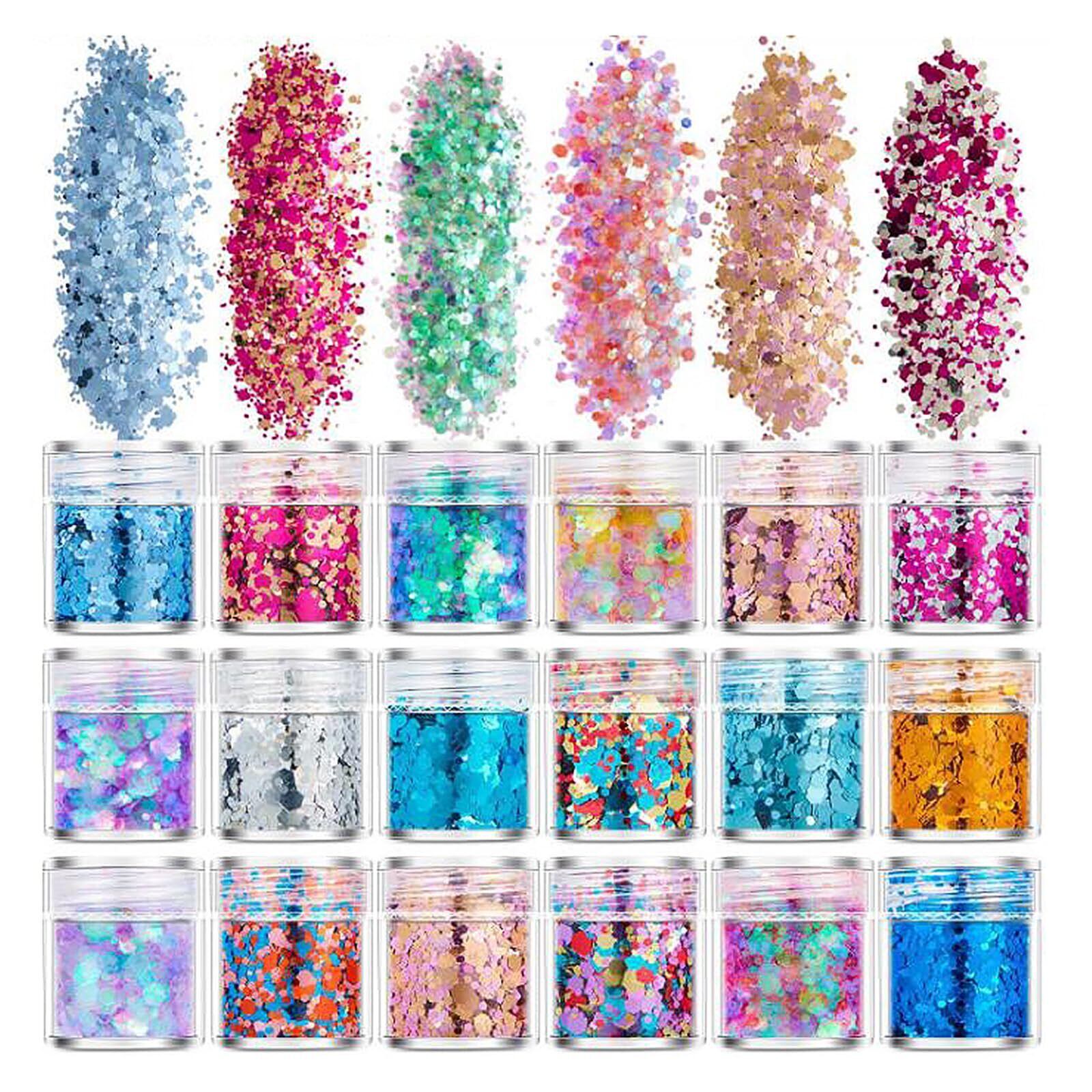 1.セット内容:18色18個入り。キラキラにして、ベースのカラーを合わせていろいろな雰囲気になれます。